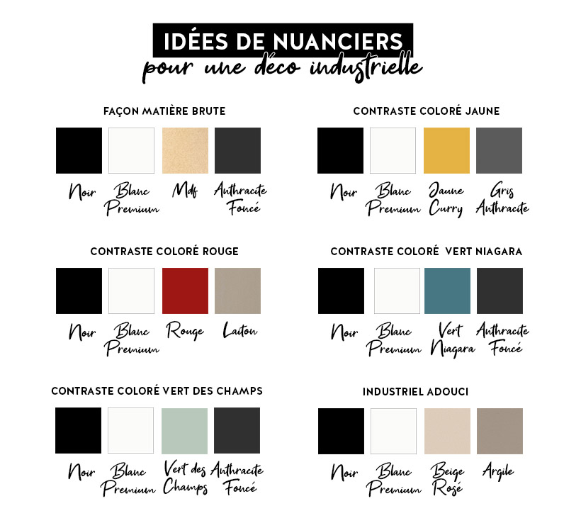 L’autre essentiel du style industriel est un choix restreint de couleurs pour créer, ici aussi, du contraste. Ainsi, on va toujours partir d’éléments noirs, ou gris foncé, et blancs, auxquels vont s’ajouter des touches de couleur rouge ou vert foncé. Si ces associations sont assez classiques, il n’est pas rare de tenter l’aventure avec des couleurs plus franches comme du bleu électrique ou du jaune. Vous pouvez aussi prendre le parti d’adoucir le rendu avec du violet ou du beige rosé. Attention à ne pas en faire trop sur la couleur cependant sous peine de cacher le relief apporté par le noir et blanc.