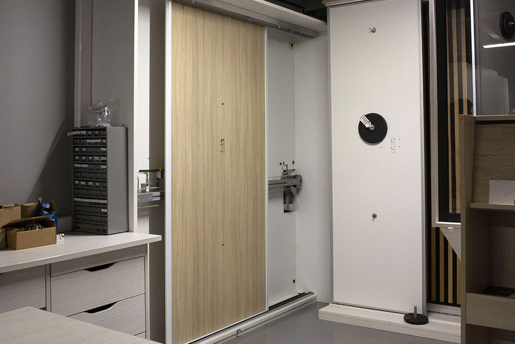 Les produits sont ensuite mis en situation, pour validation, dans une zone dédiée au prototypage dans laquelle ils vont subir plusieurs types de test, comme le test d’endurance sur nos portes coulissantes pratiqué à l’aide de notre banc d’essai dédié. Les produits sont testés en fonctionnement par mesure de précaution, en suivant les recommandations et normes du FCBA.