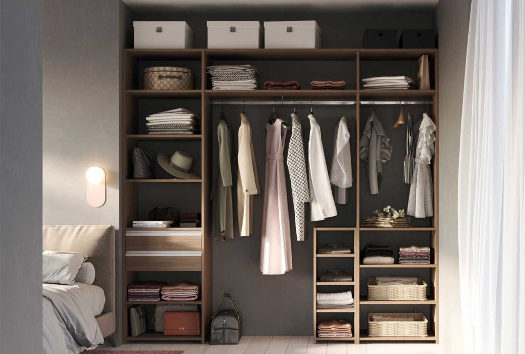 Il existe de nombreuses combinaisons possibles quant à l’organisation de votre dressing. Rangement sans porte, avec portes intégrées, droit, en L ou en U, à vous de choisir ce qui vous convient le mieux.