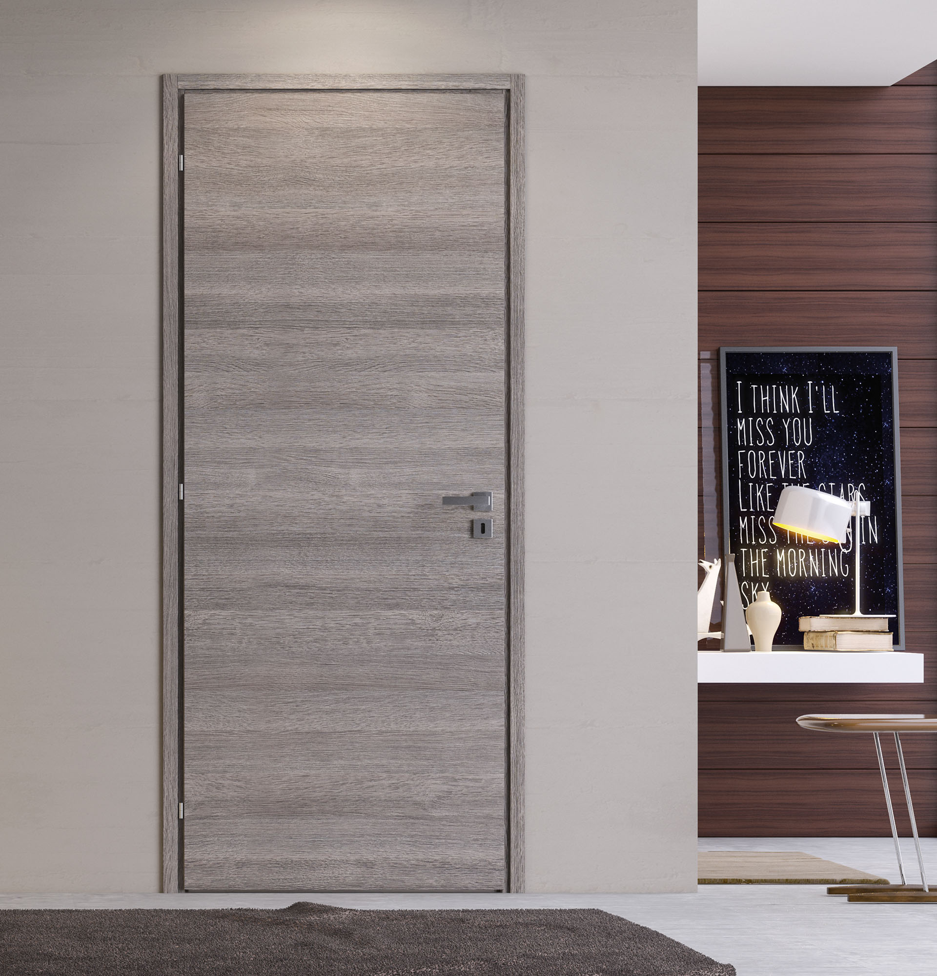 | Chêne cendré brossé, laqué carta da zucchero, laqué argilla | Gris |