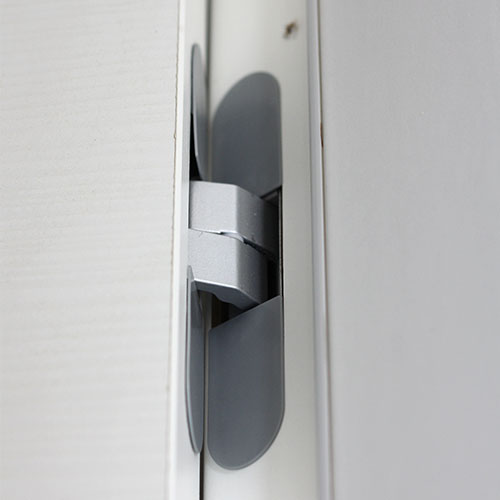 La porte est installée sur des charnières invisibles. Le système d’accroche est donc discret.
