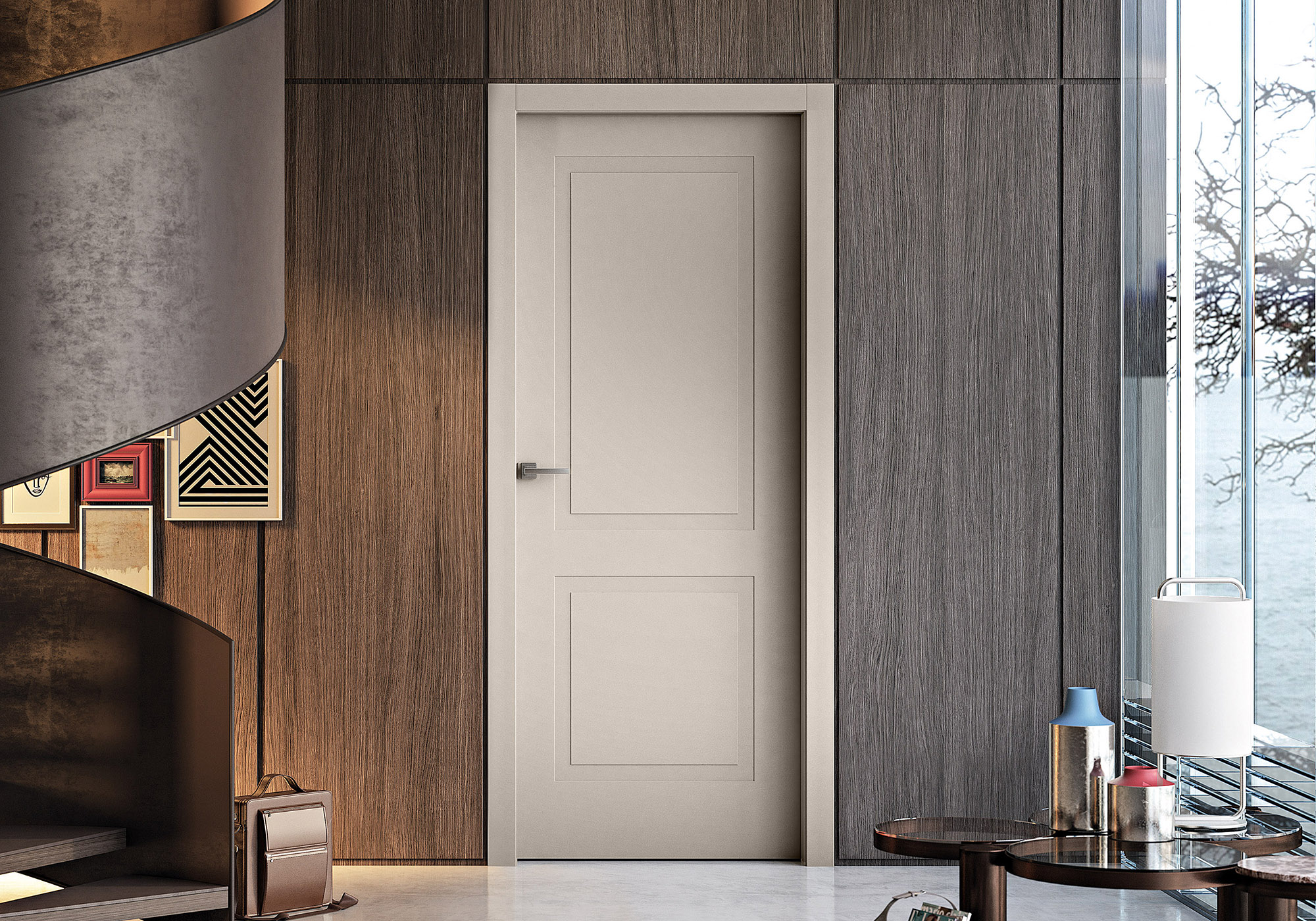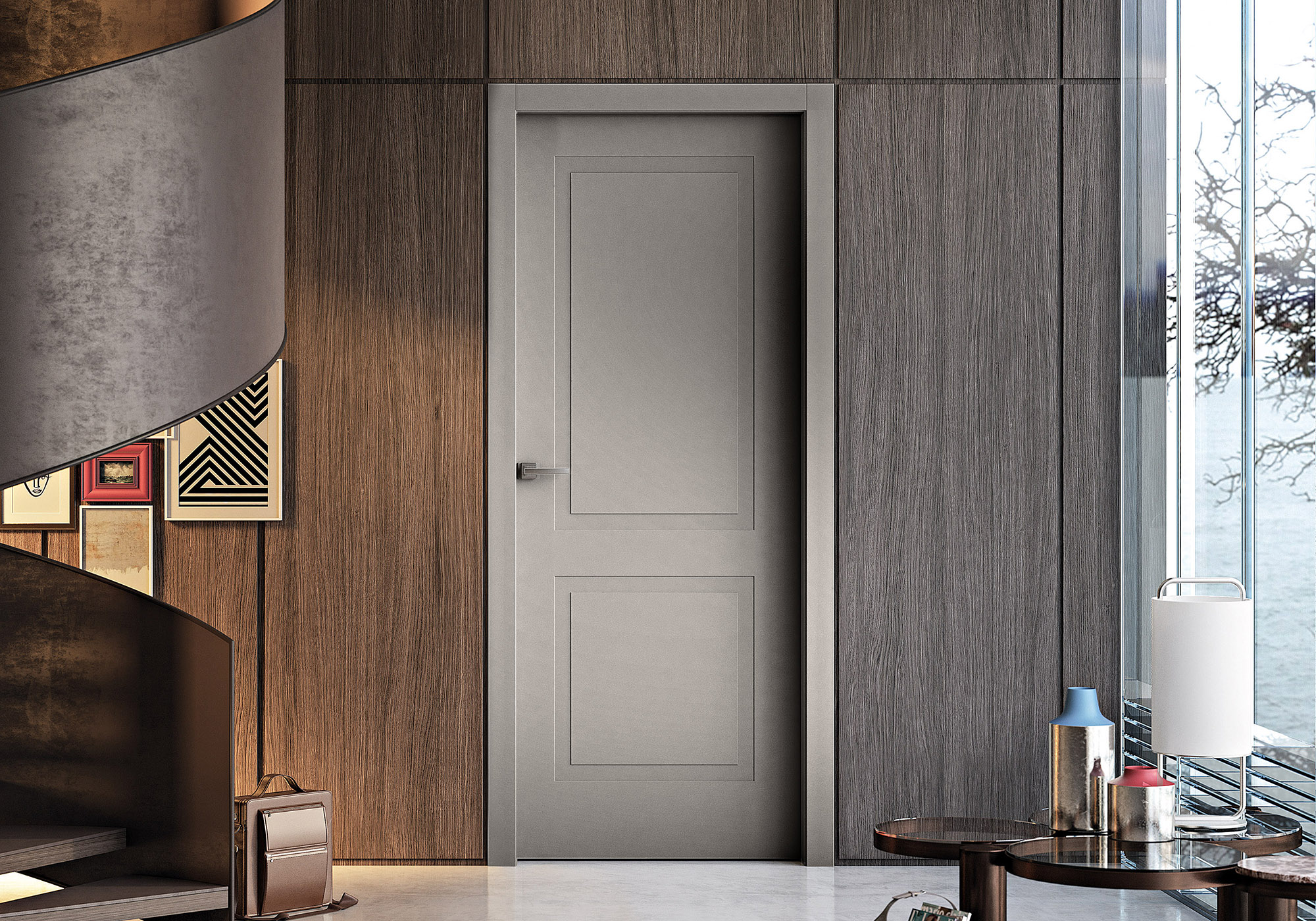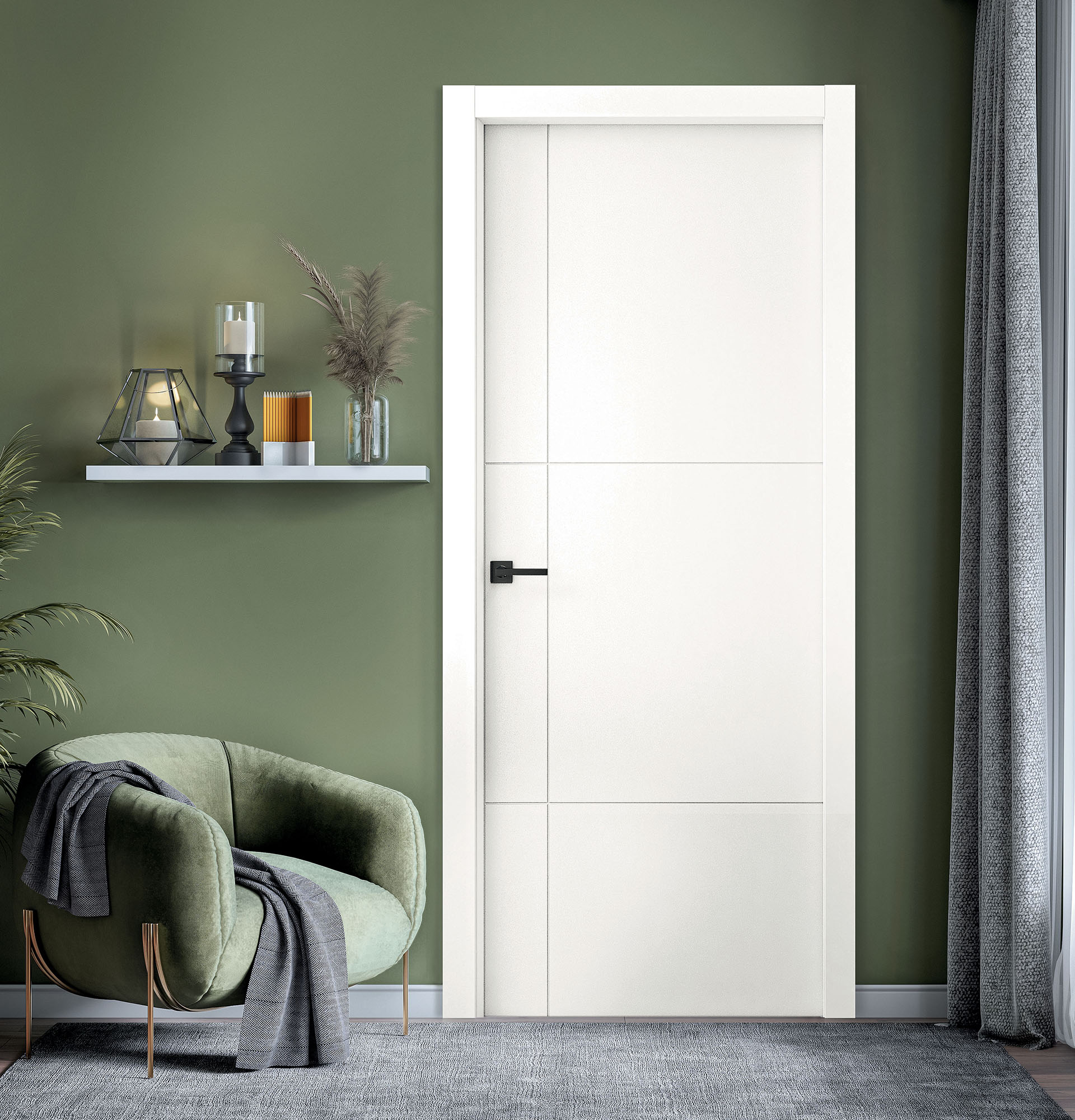 L’option Riga appose ses rainures dans des formes graphiques pour apporter du relief à la porte. 5 modèles aux tracés designs qui animeront sobrement les intérieurs. Uniquement disponible en finition laquée.