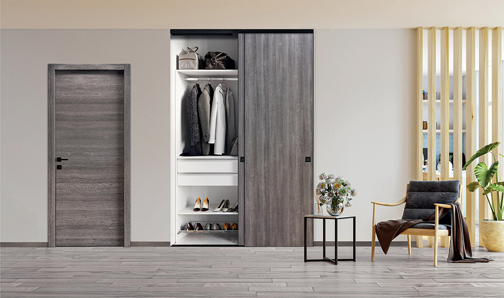 Pour peaufiner votre intérieur jusque dans les moindres détails, quatre décors bois sont aussi disponibles dans notre nuancier de rangement. De cette façon, vous pouvez concevoir des aménagements comprenant des rappels de couleur avec vos portes d’intérieur.
