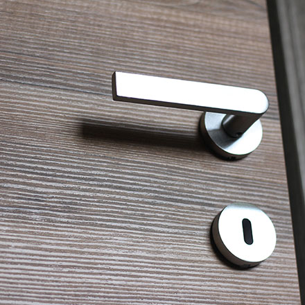 Parce qu’elle permet de manipuler la porte, l’ajout d’une poignée est indispensable. Cependant, elle va aussi contribuer à l’esthétique du bloc-porte.