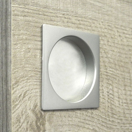 La poignée carrée est disponible en chromé satiné et en noir mat. Dans le cas d’une habitation alternant les portes coulissantes et les bloc-portes, elle fera écho aux poignées Genoa et Livigno conçues pour les portes battantes.