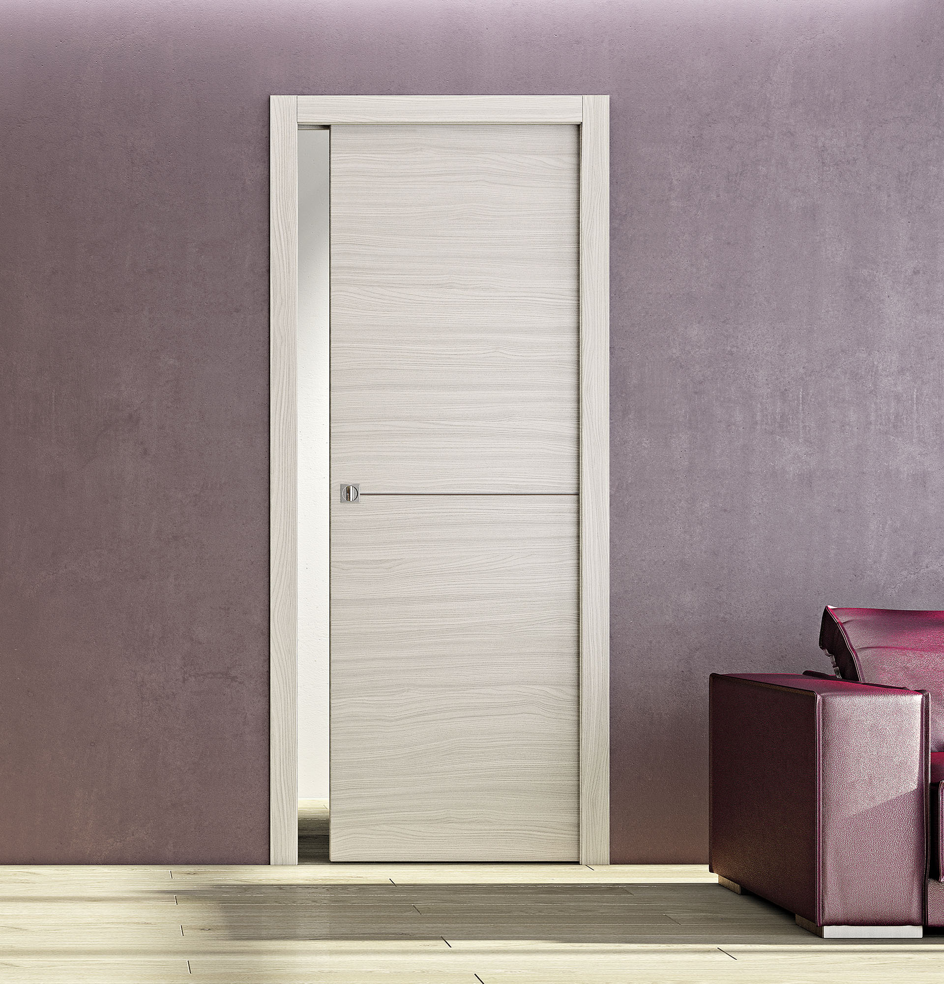 Les modèles rainurés apportent une décoration fine aux portes laquées. La porte prend des allures modernes tout en subtilité. Elle habille discrètement et renforce les lignes d’une décoration. Uniquement disponible pour les finitions laquées.