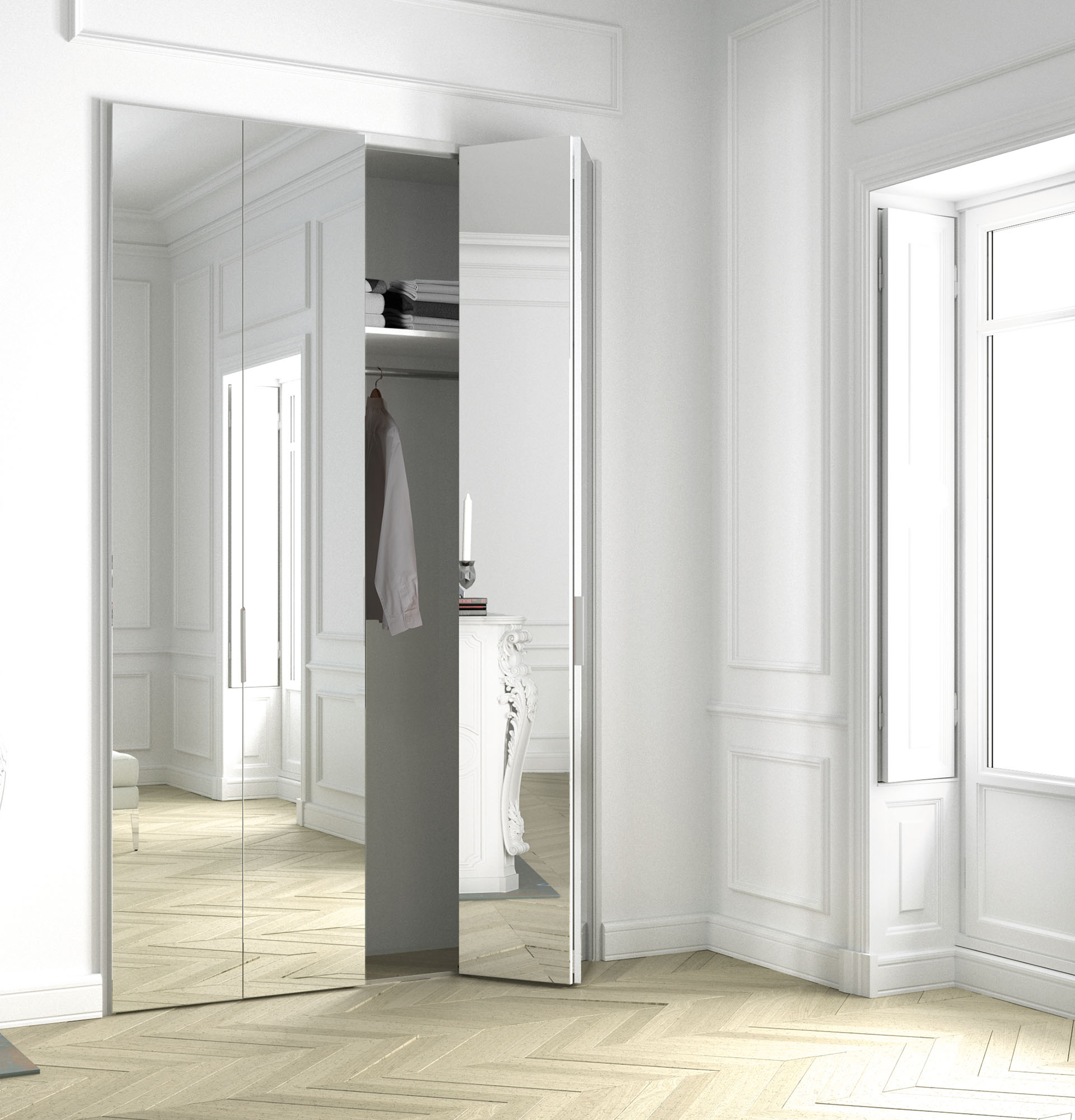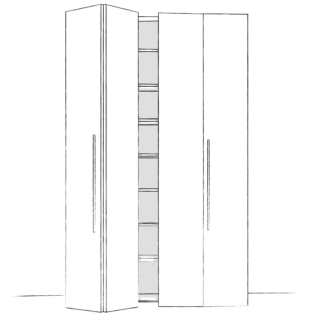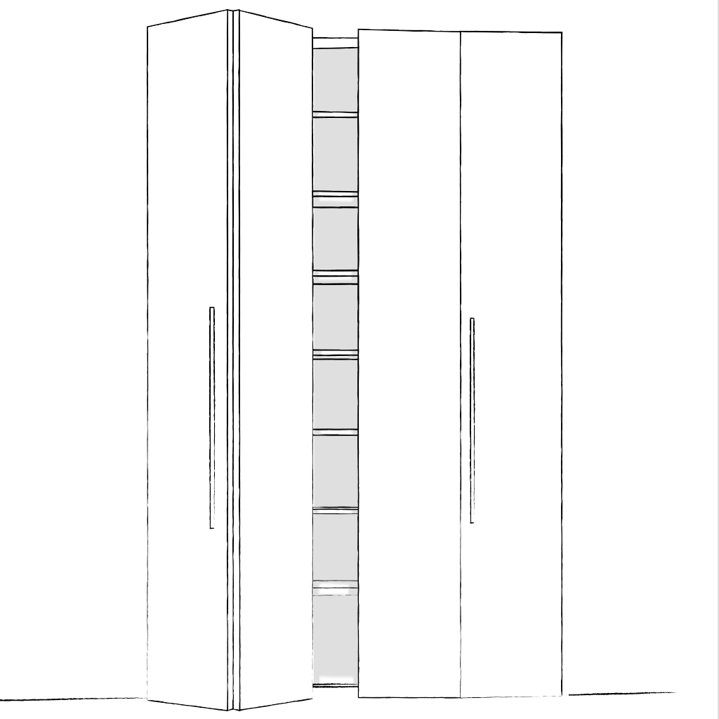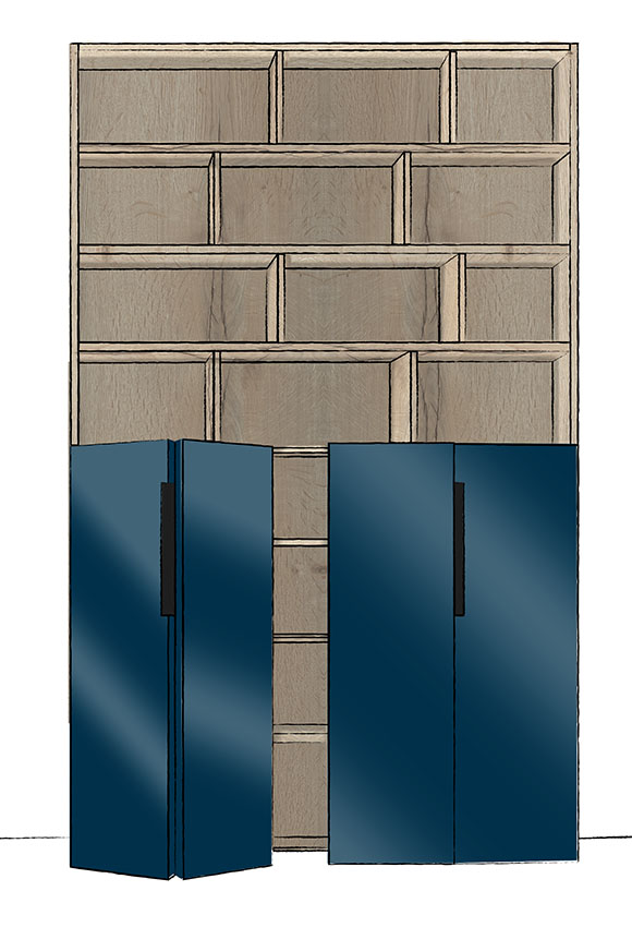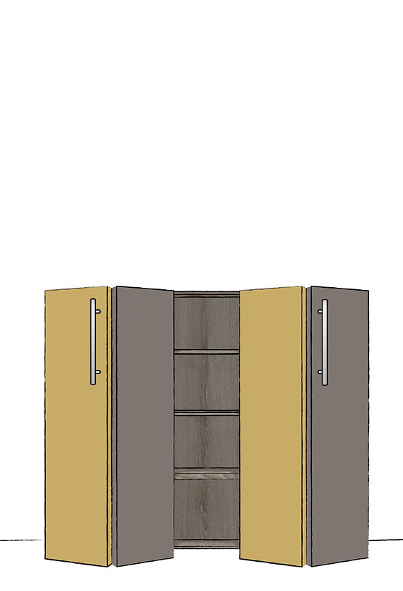 Elles sont particulièrement adaptées pour les meubles qui offrent peu de largeur et ne permettent pas d’installer un espace où glisser une porte coulissante. Les panneaux qui composent la façade se replient en accordéon en bout de rail. De cette manière, la place prise à l’ouverture est minimale. Parfait pour une pièce où le passage est étroit !
