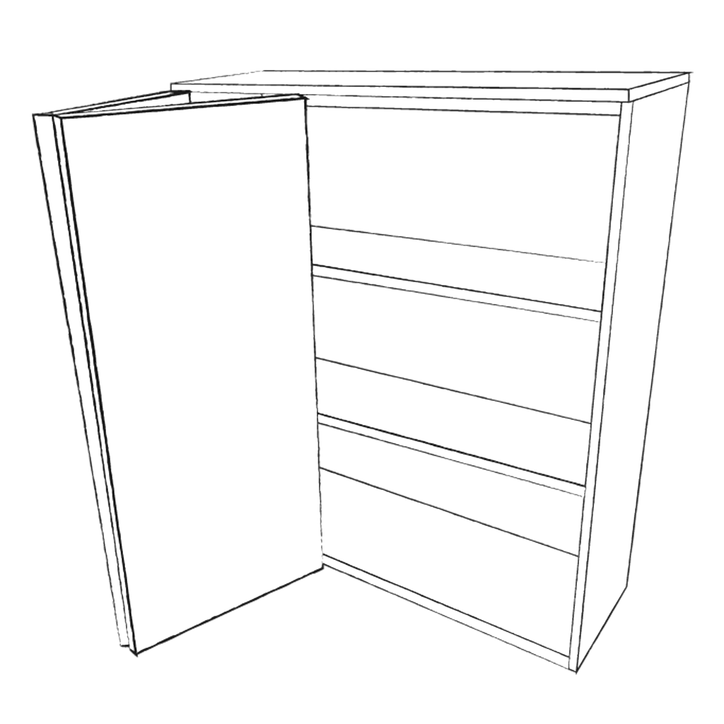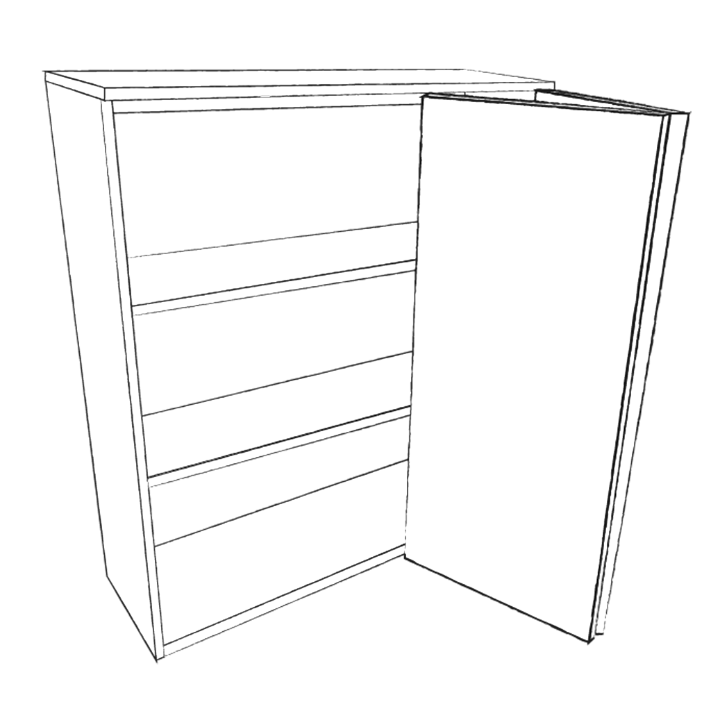 Pour poser des portes pliantes, il est nécessaire d’avoir une structure sur laquelle s’appuyer. Dans le cas d’un rangement indépendant, on va prévoir des montants de finitions, c’est-à-dire des panneaux légèrement plus grands qui vont être installés sur les côtés du meuble pour y fixer les portes.