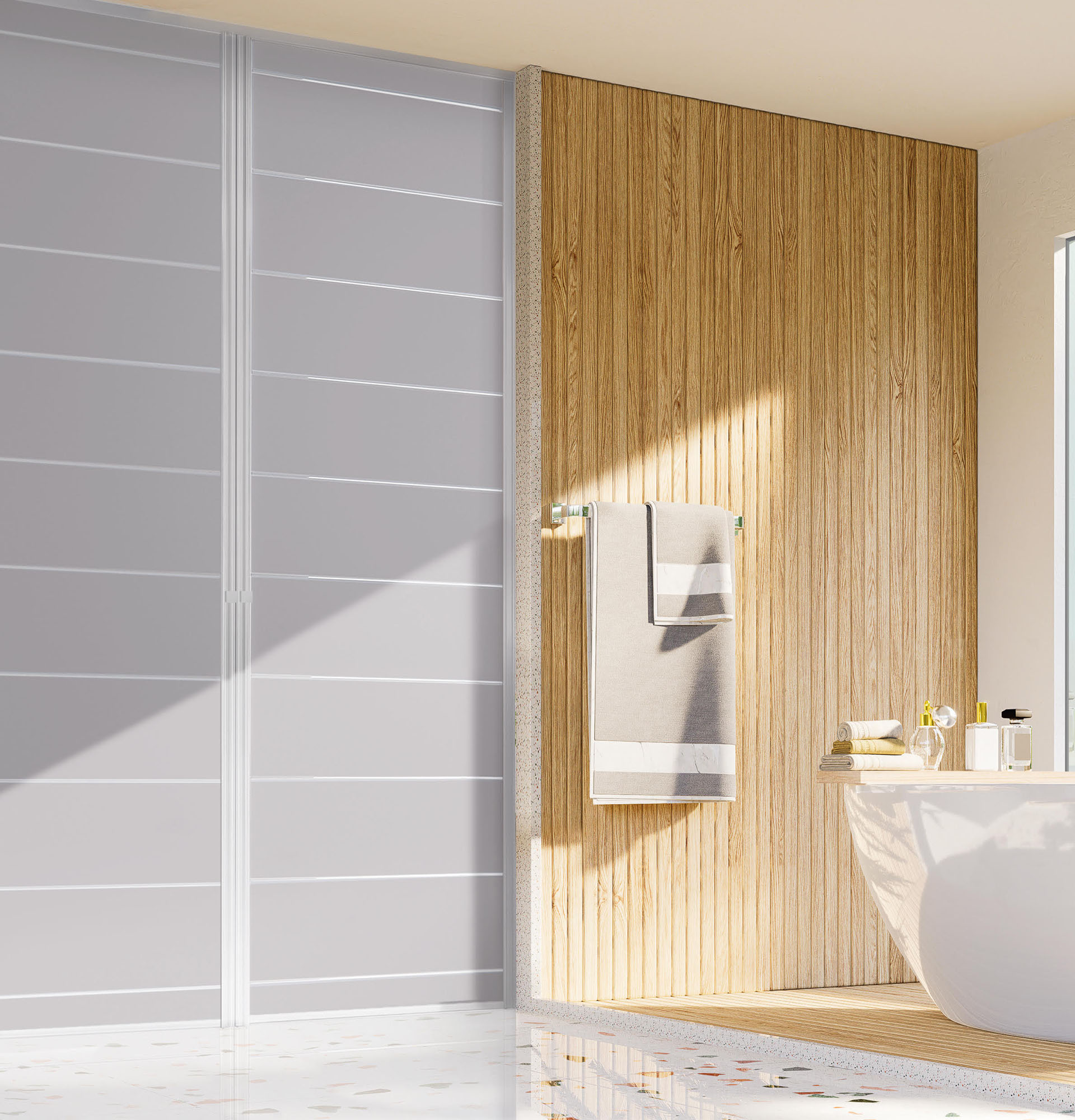 jusqu'à 2 600 mm pour les vitres exclusives (2 580 mm pour Eclipse, Mirage, Connexion et Fibres / 2 520 mm pour Carreau-Ciment)