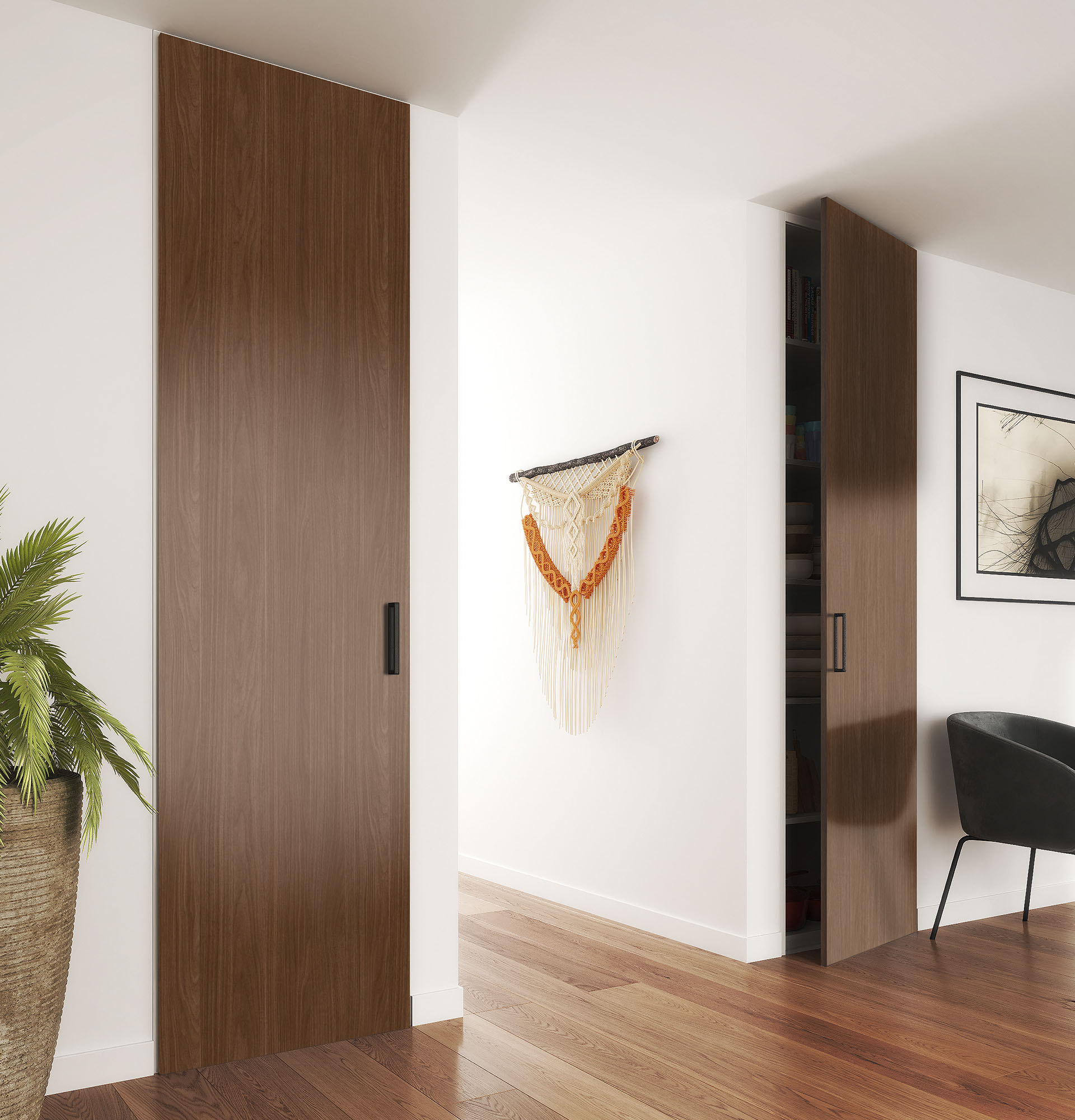 Nos portes sur charnières invisibles sont équipées de charnières à ouverture 110° avec amortisseurs intégrés. Voir les autres charnières dans la section "Ouverture" plus bas.