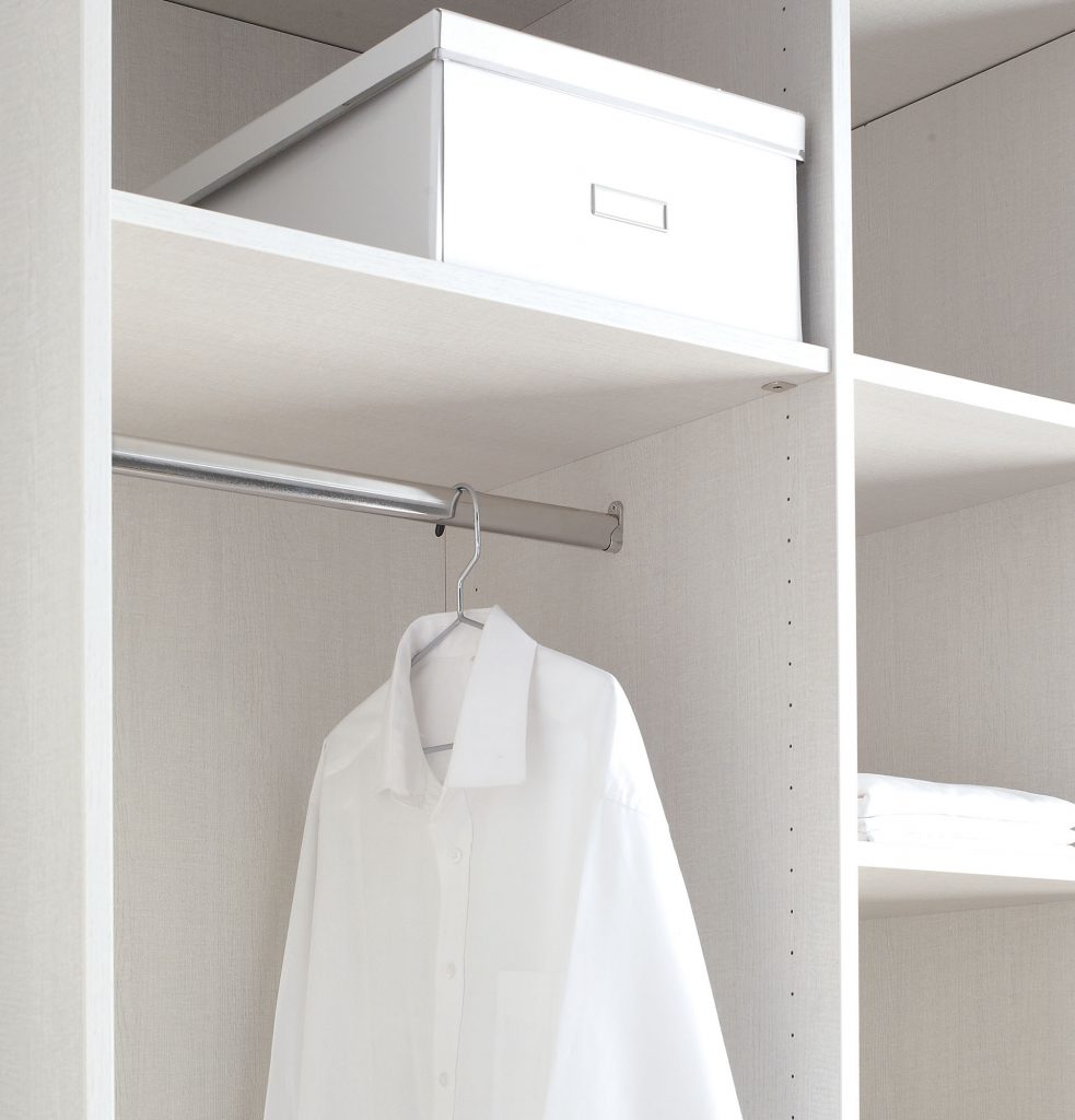 Et pour s’adapter à la quantité de vêtements ou d’affaires que vous possédez, d’autres accessoires peuvent être prévus pour ajouter de la surface de rangement. Vous pouvez, par exemple, profiter de toute la partie ouverte de votre armoire pour y glisser une seconde tringle basse afin d’y accrocher toutes vos chemises.