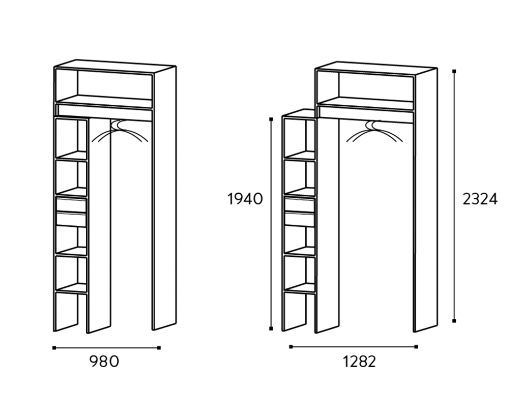 ✔️ Module penderie : largeur 980 mm