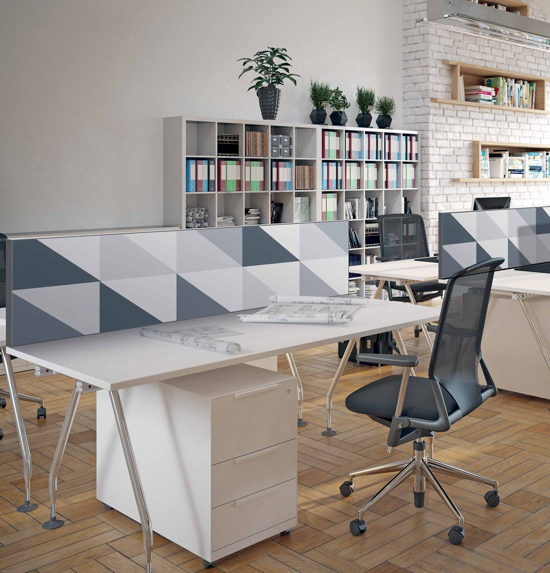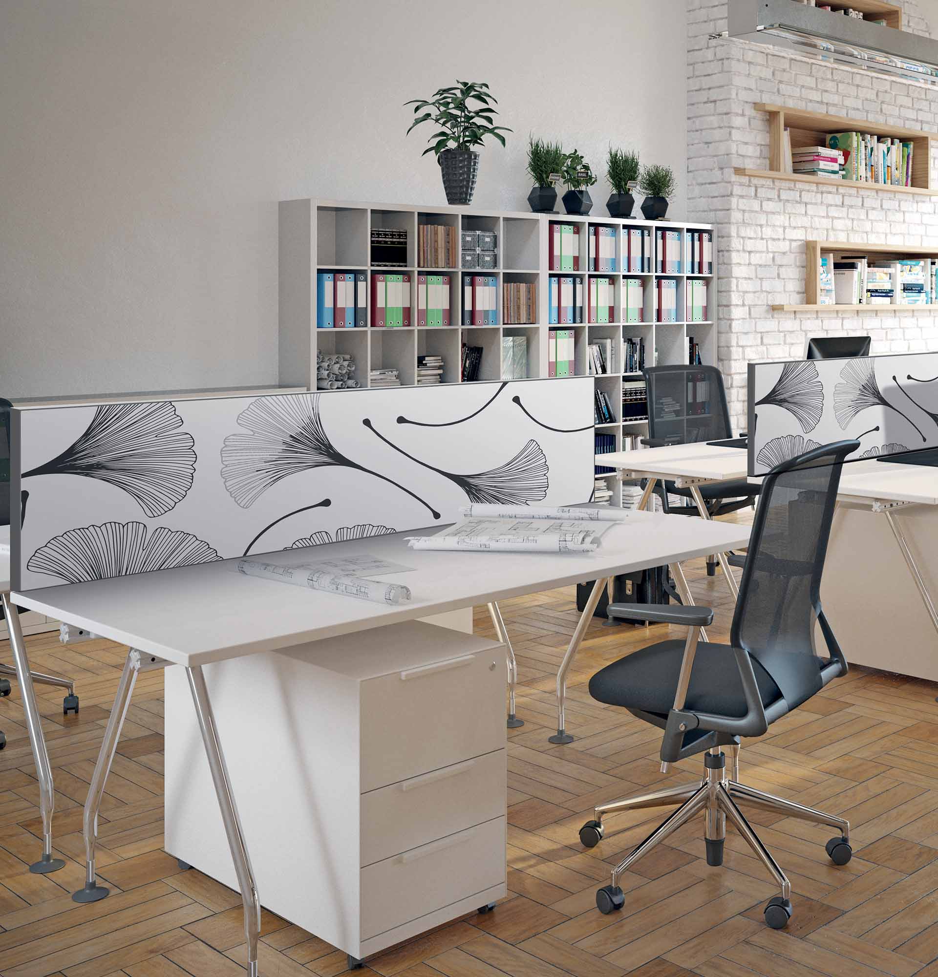 Un séparateur de bureau facilement interchangeables et aux propriétés acoustiques (en option). Cette solution ludique et esthétique vous permet de changer facilement de décor selon vos envies, vos goûts et l’évolution de votre maison. Laissez libre cours à votre imagination et choisissez le produit qui vous ressemble !