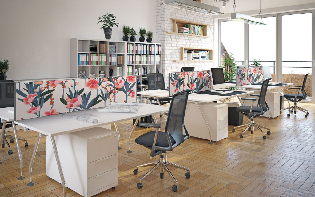 Pour les plus espaces neutres ou appelant à la discrétion, nos designers ont pensé des créations adaptées à des ambiances feutrées, comme les modèles Papier ou Gravitation. D’autres choix plus marqués peuvent aussi apporter une touche décorative forte au bureau, comme les décors Tsuru ou Végétal.
