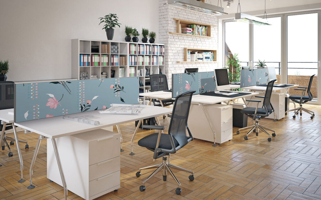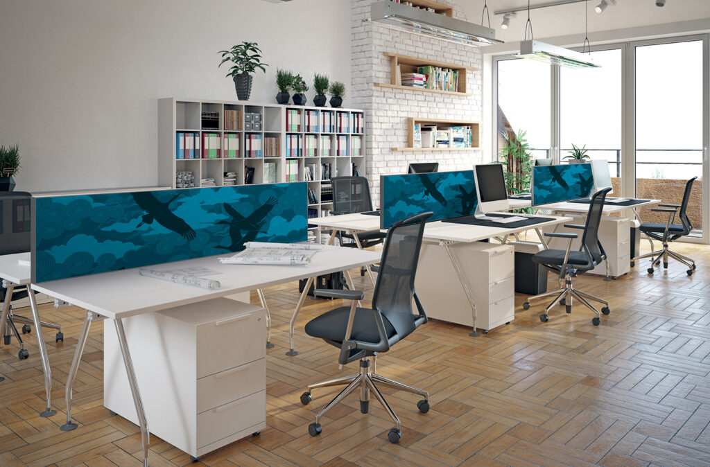 Pour délimiter les emplacements de travail de chacun, utiliser un séparateur de bureau est une solution efficace. Imago réinvente cet outil indispensable en lui apportant ses avantages incontournables. Enrichi d’une mousse acoustique, il va réduire les nuisances sonores et, grâce à sa toile interchangeable, chaque utilisateur va pouvoir choisir un décor à sa convenance.