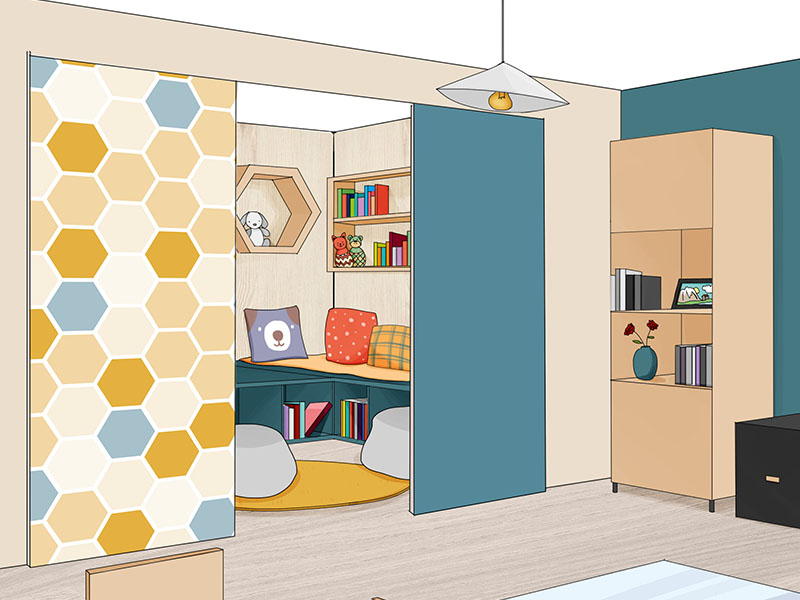 Vous pouvez par exemple aménager une salle de jeux pour vos enfants dans une alcôve existante, pour qu’ils puissent bénéficier d’un espace qui leur est dédié sans empiéter sur le salon.