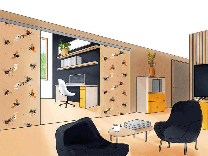 En entreprise, on peut imaginer de délimiter un open-space en plusieurs petits espaces afin d’optimiser la concentration sans se couper de ses collègues.