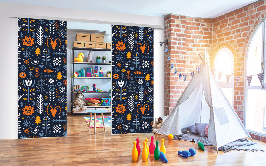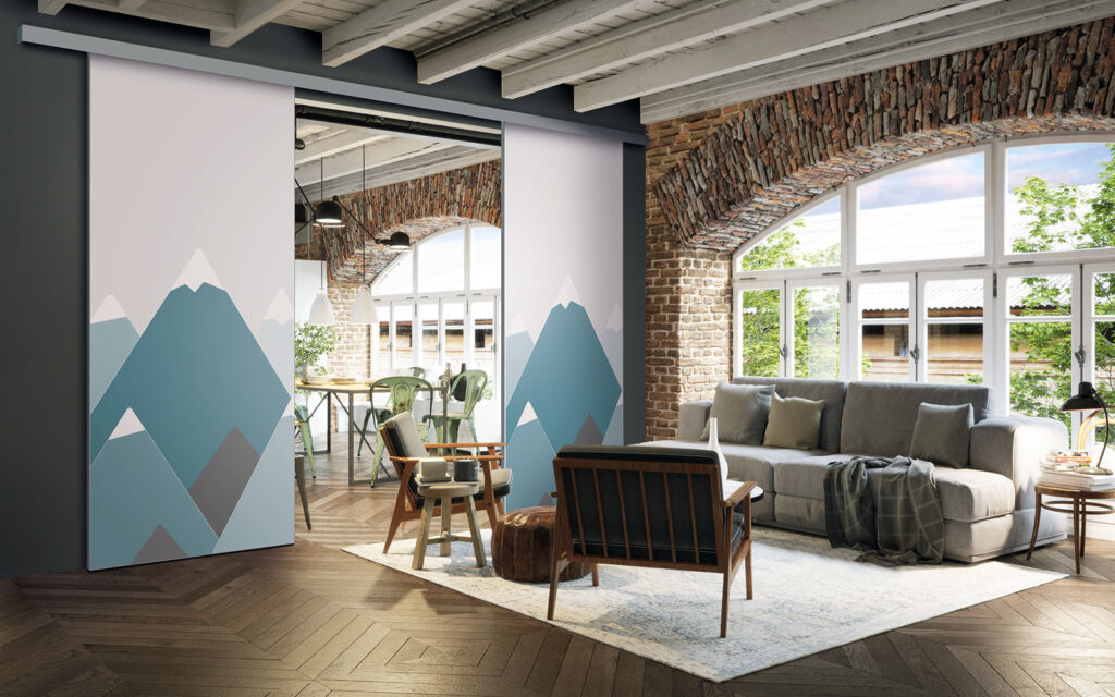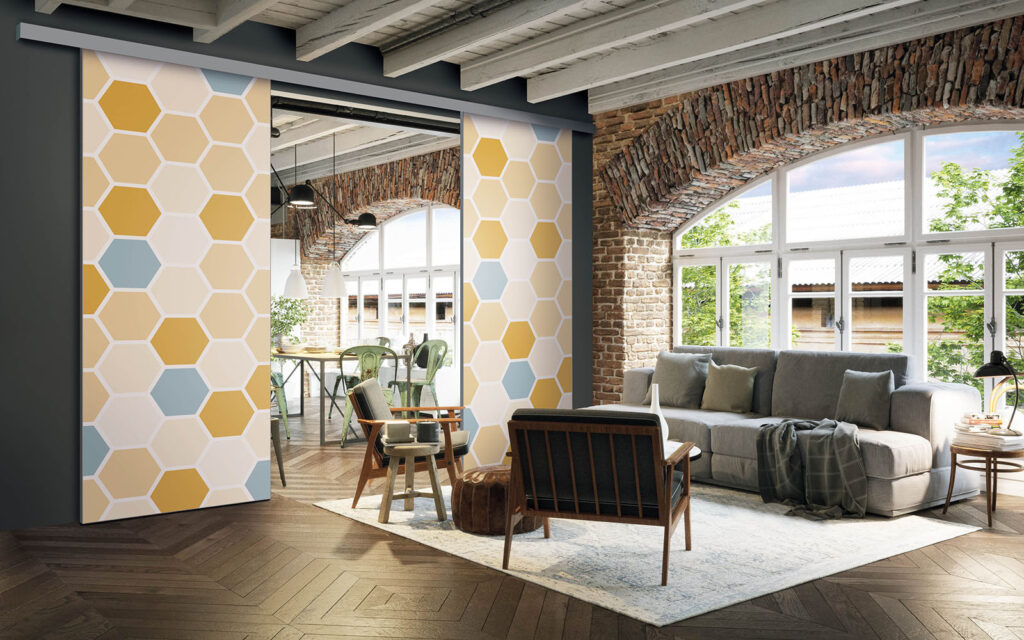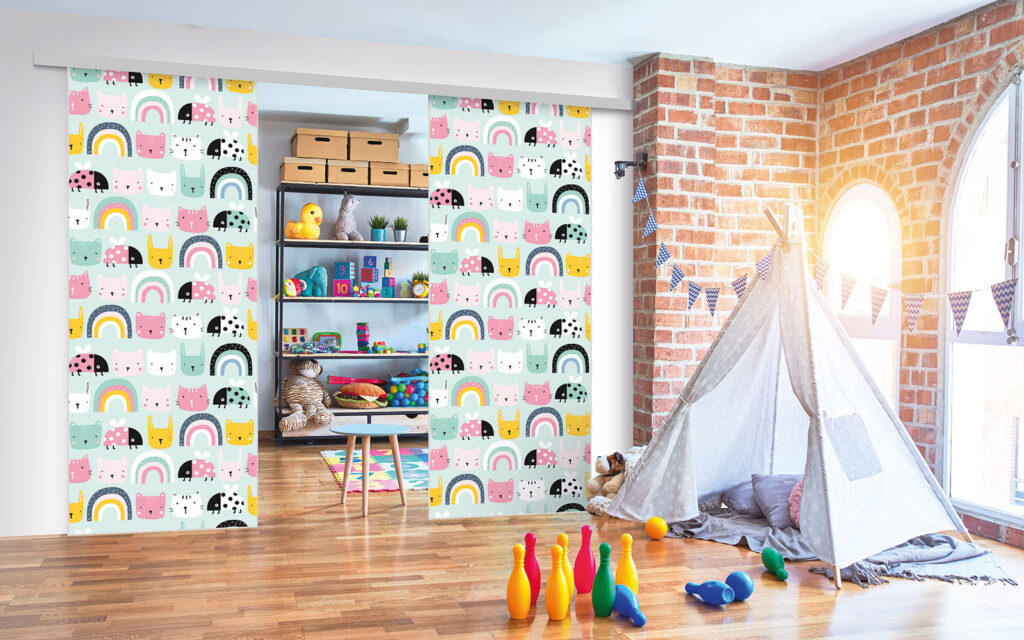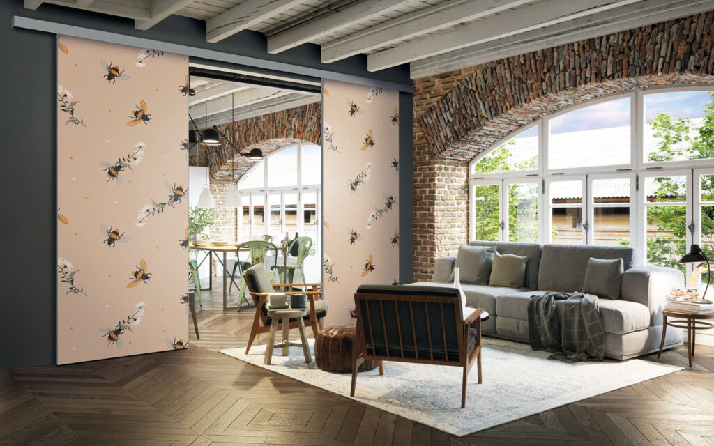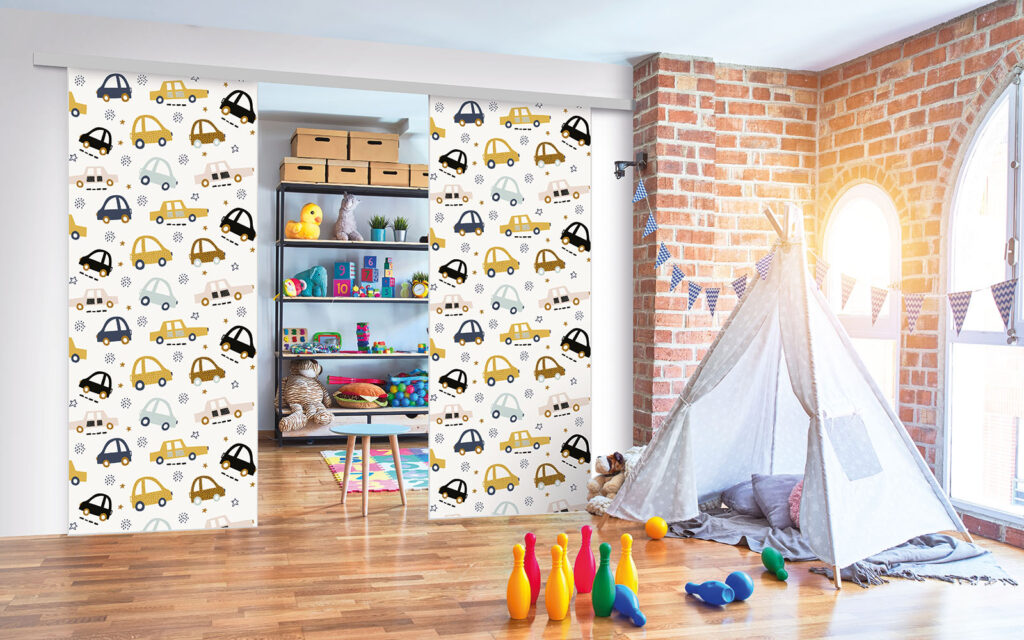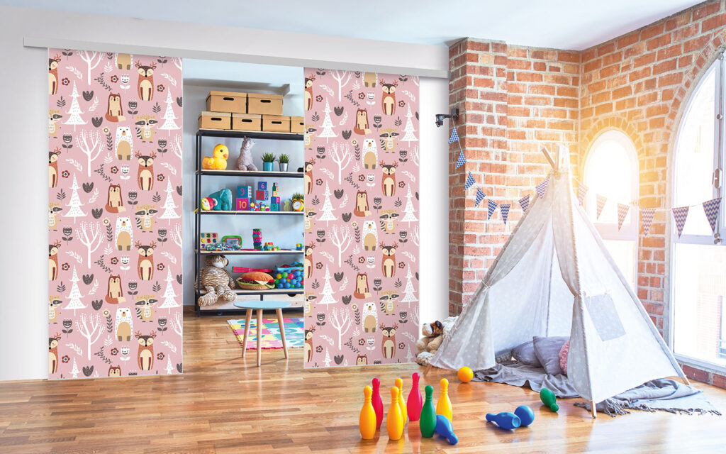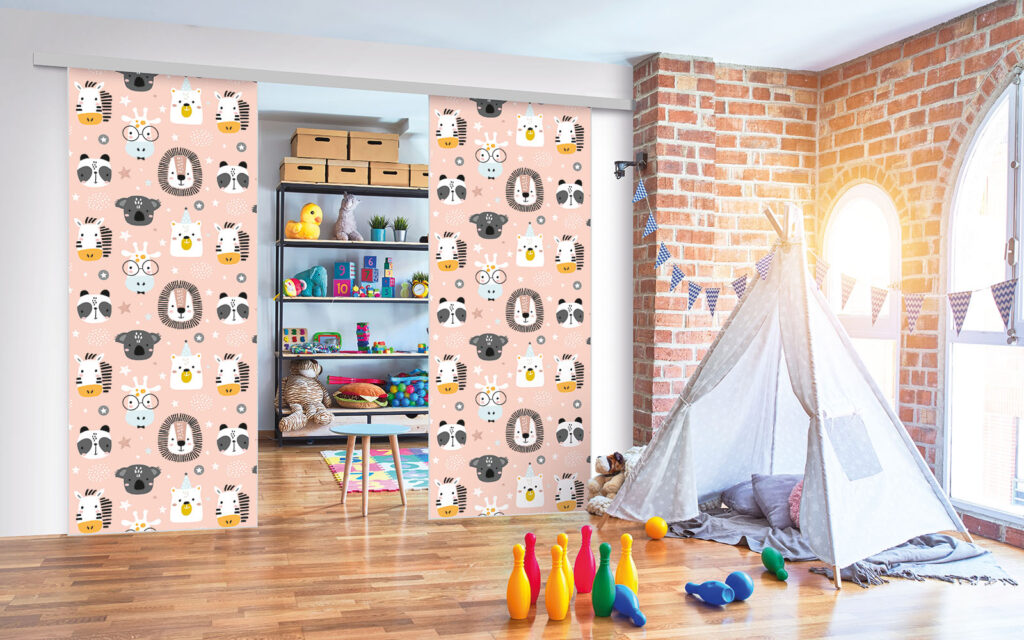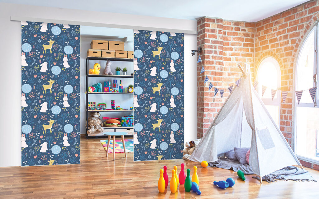 Ce sont des séparations de pièces sur toile tendue, ce qui signifie que vous pouvez changer de motif selon vos envies, sans remplacer intégralement les façades.