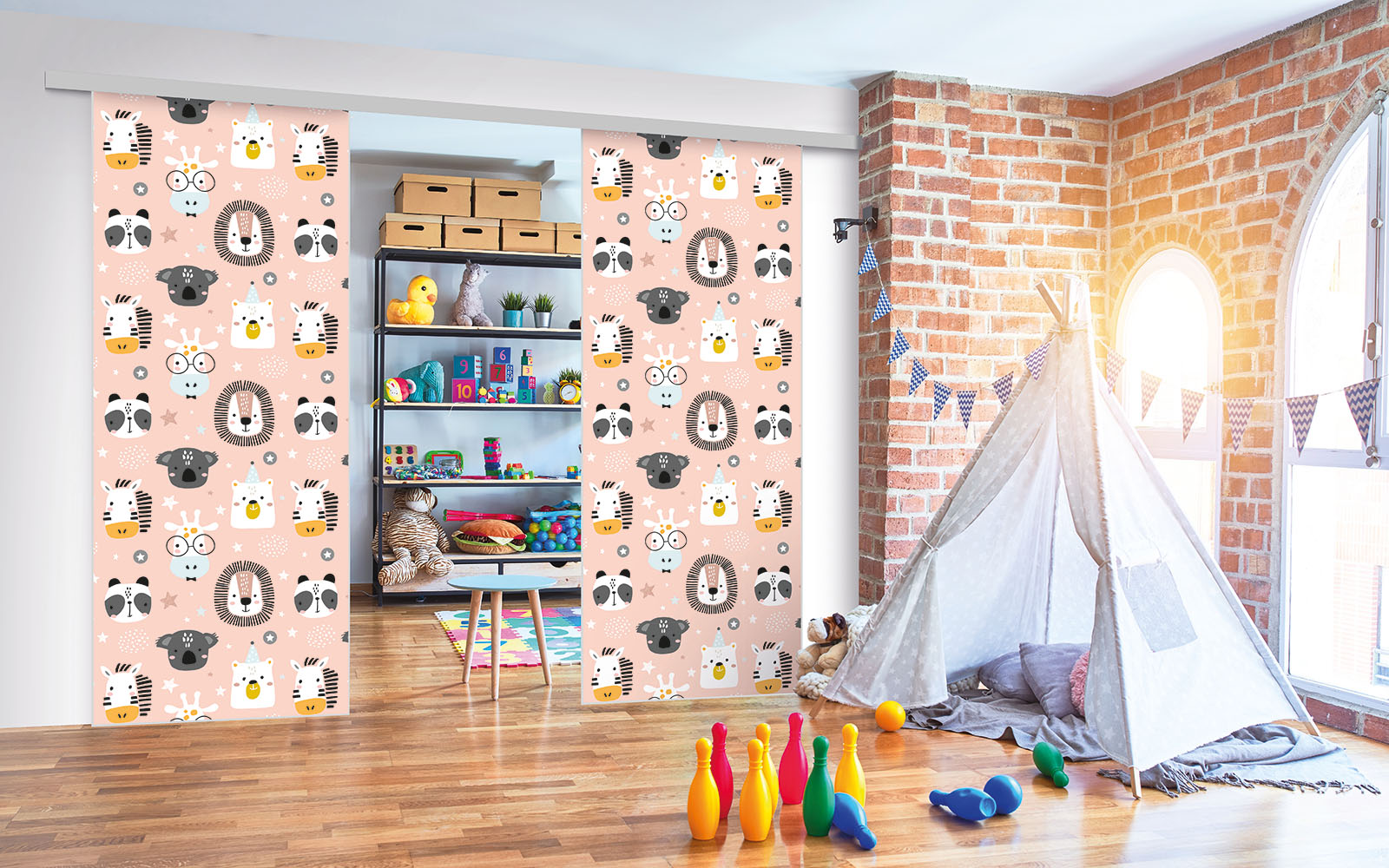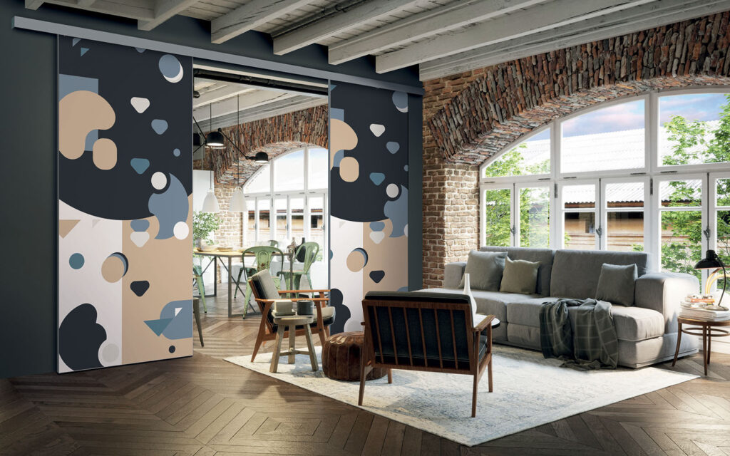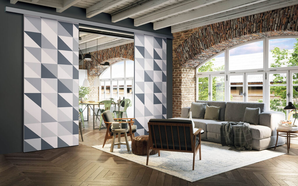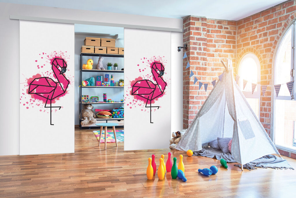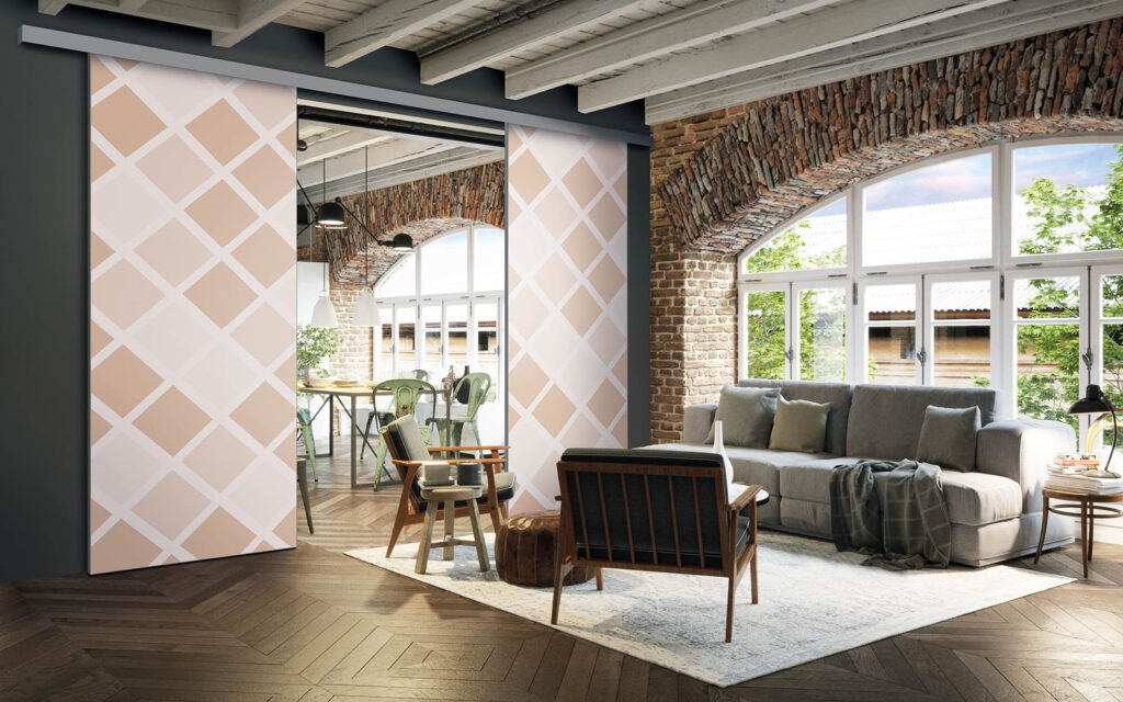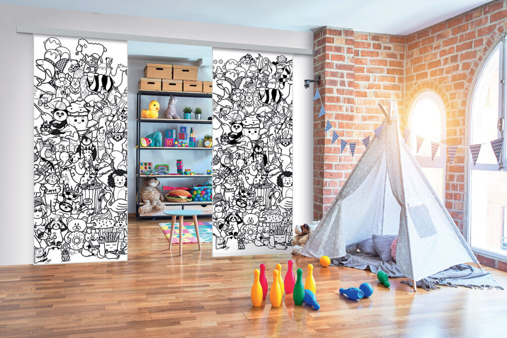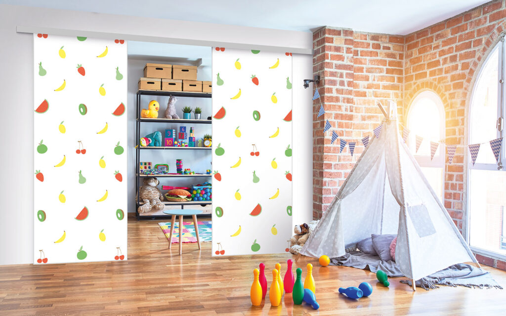 Ce sont des séparations de pièces sur toile tendue, ce qui signifie que vous pouvez changer de motif selon vos envies, sans remplacer intégralement les façades.