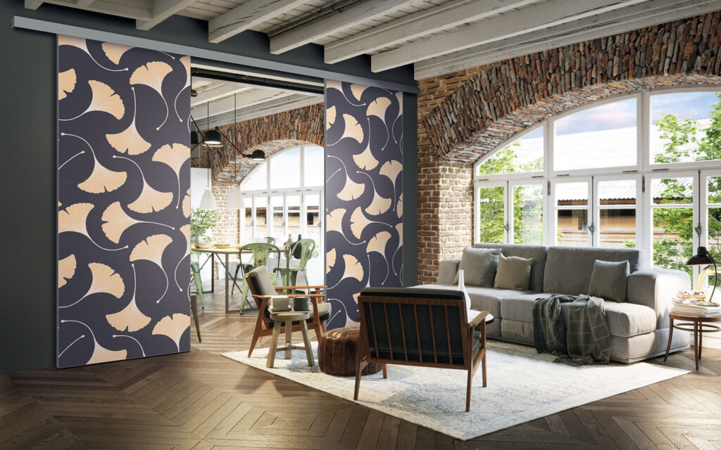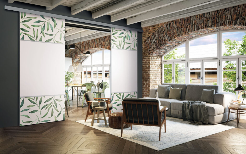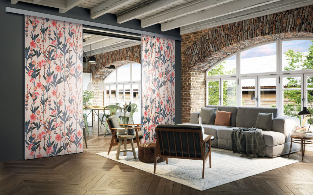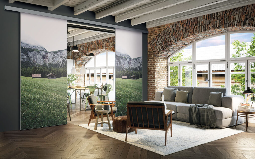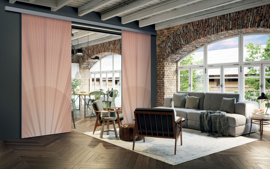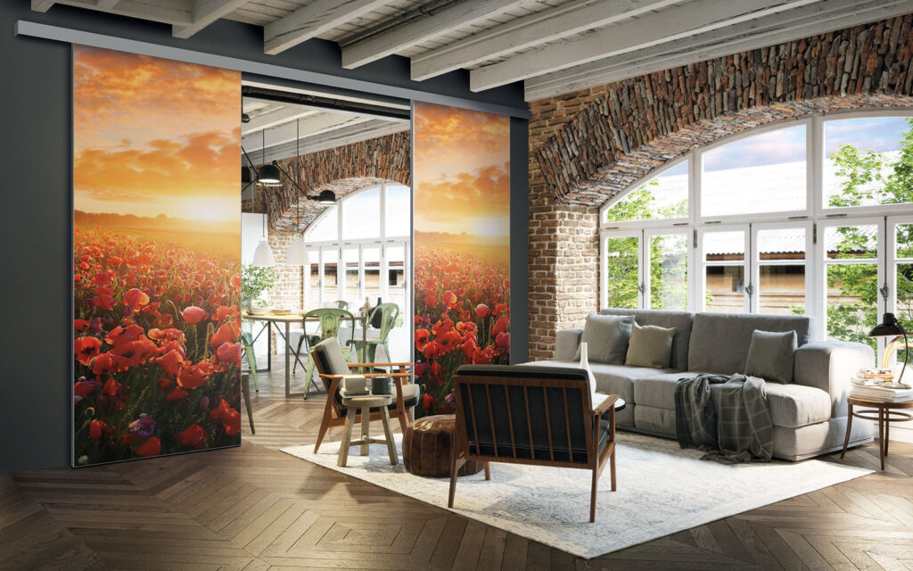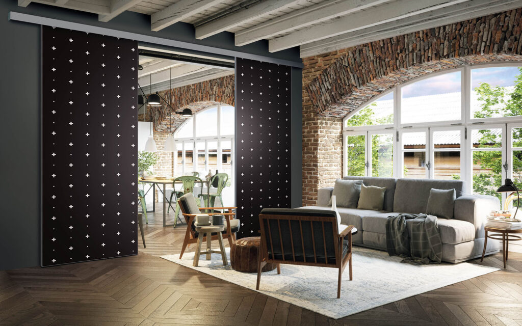 Il est possible de choisir un décor différent pour chaque face de votre séparation de pièces : ainsi, elle s’adapte en toute simplicité au style de votre intérieur.