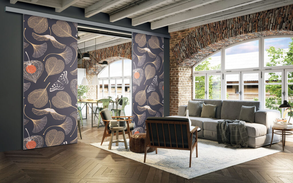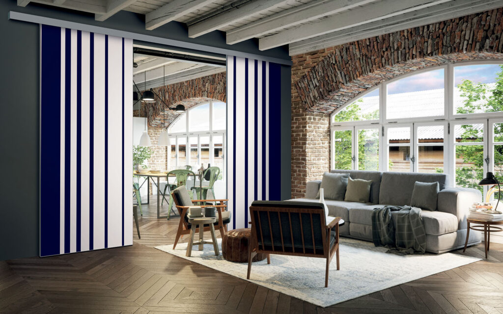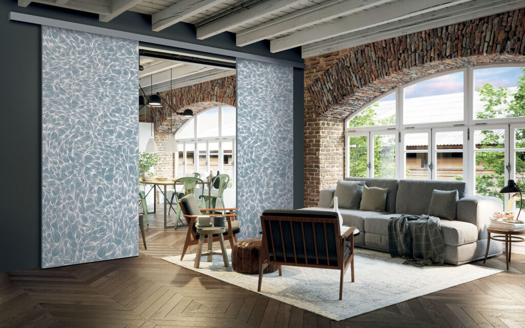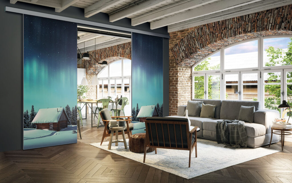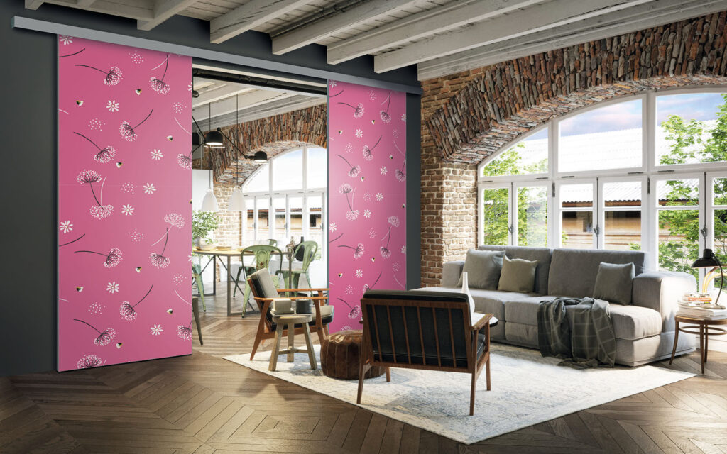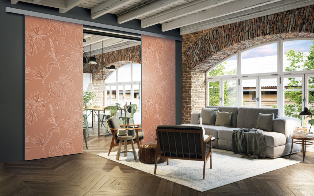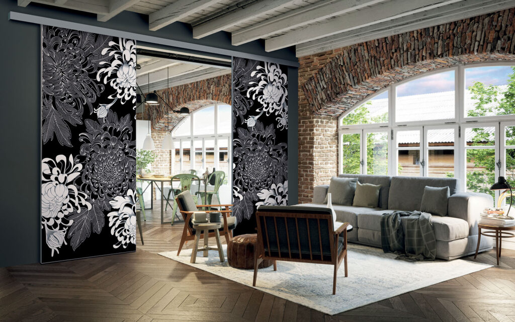 Il est possible de choisir un décor différent pour chaque face de votre séparation de pièces : ainsi, elle s’adapte en toute simplicité au style de votre intérieur.