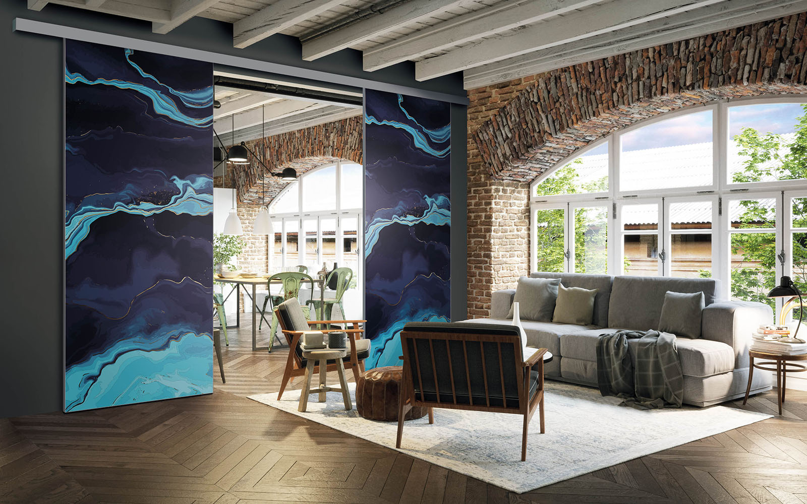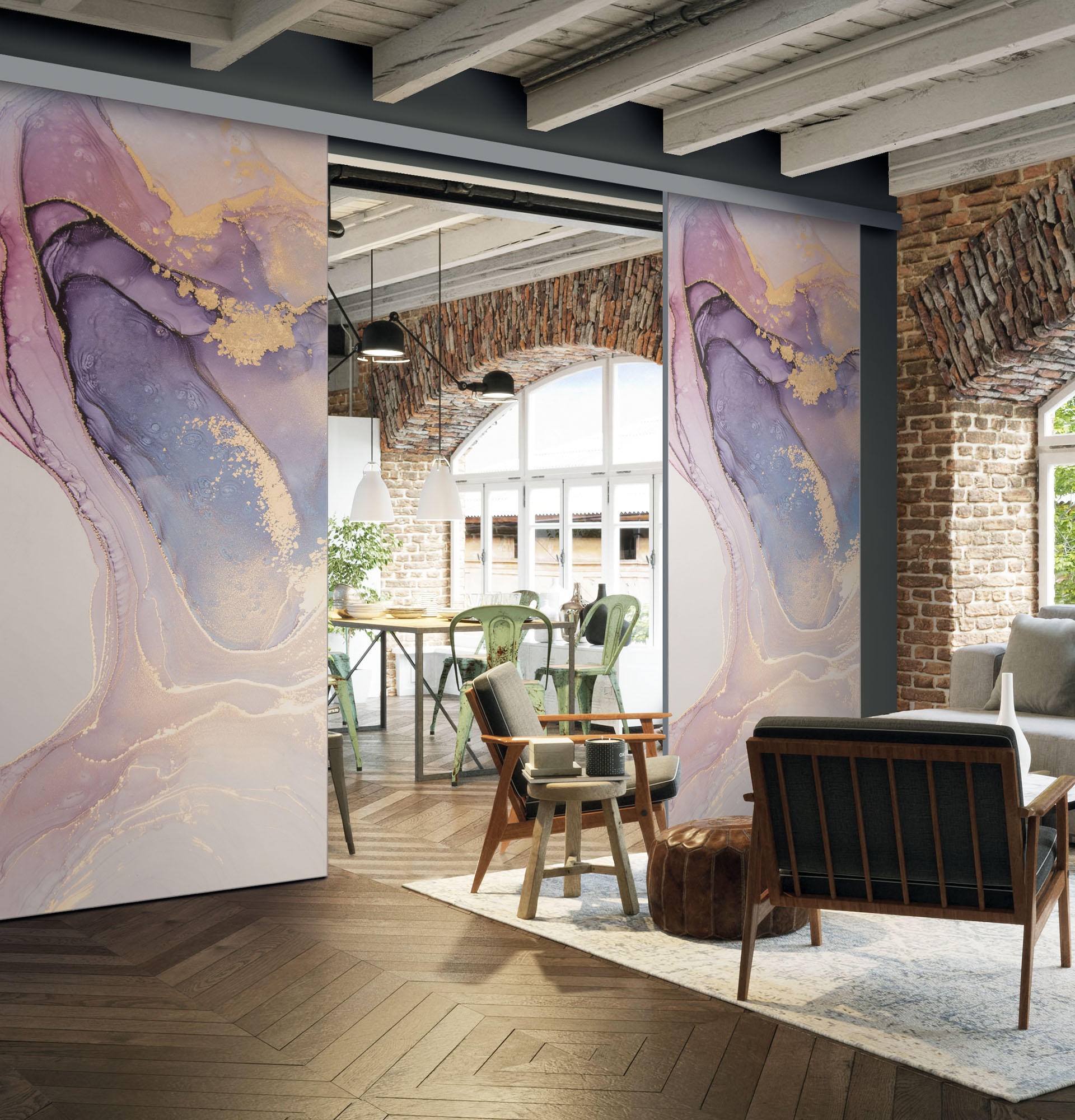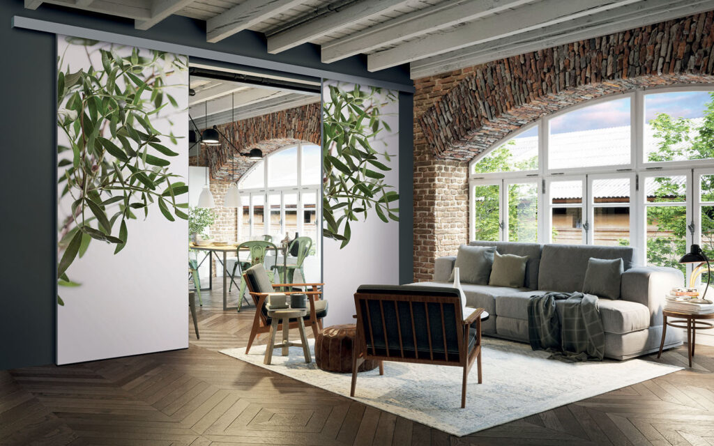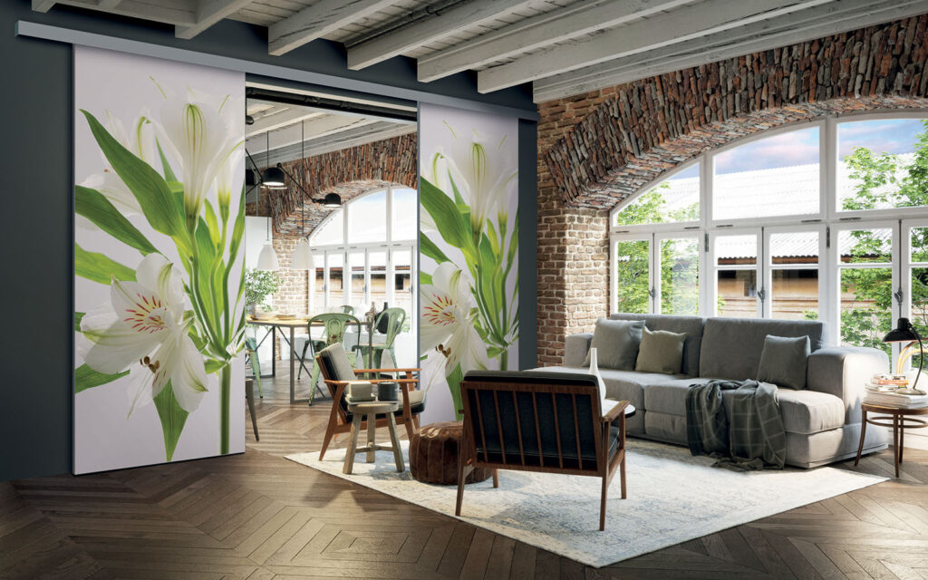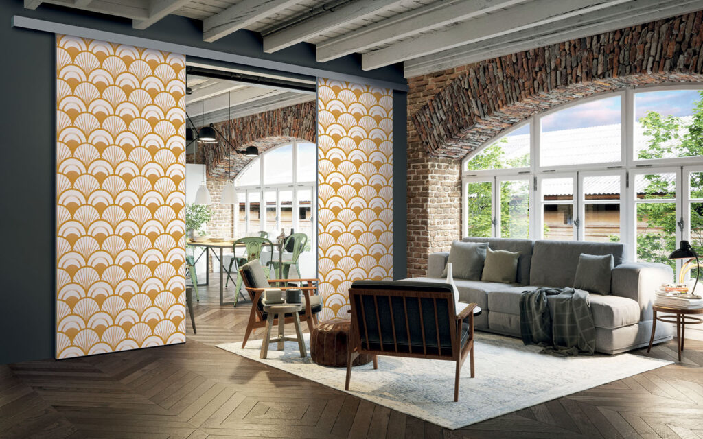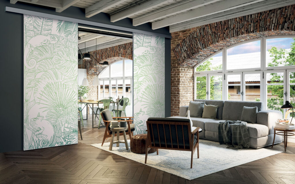 Il est possible de choisir un décor différent pour chaque face de votre séparation de pièces : ainsi, elle s’adapte en toute simplicité au style de votre intérieur.