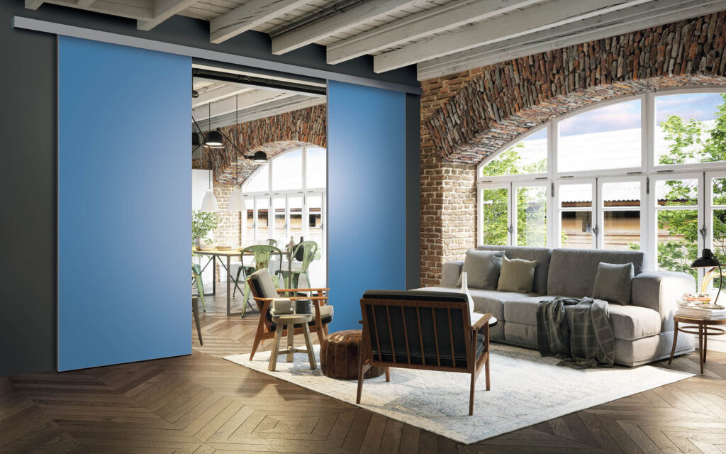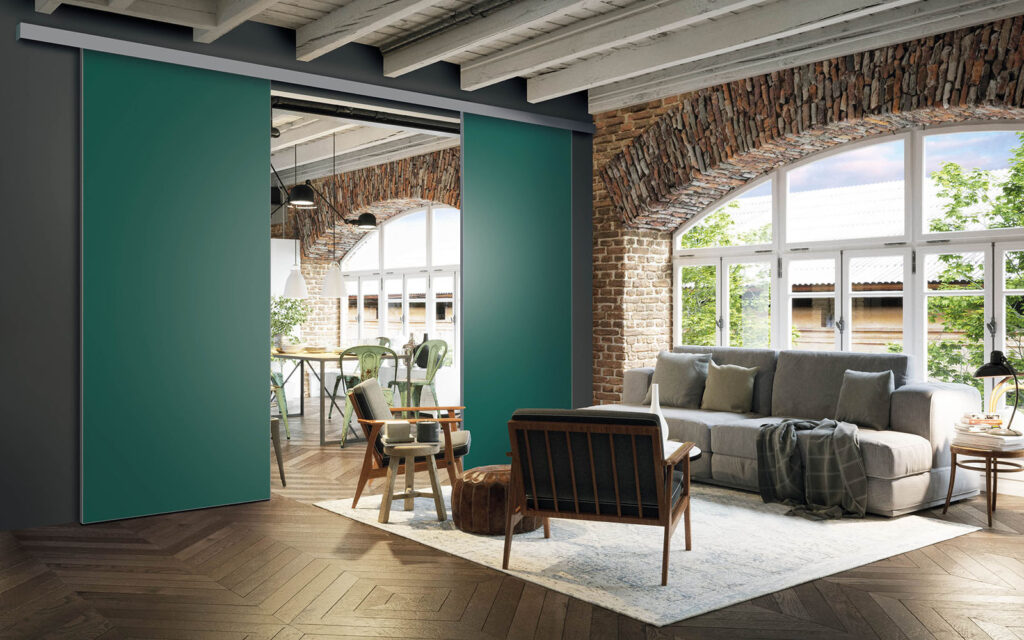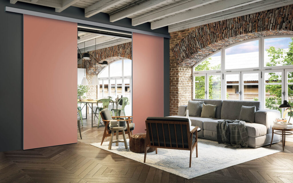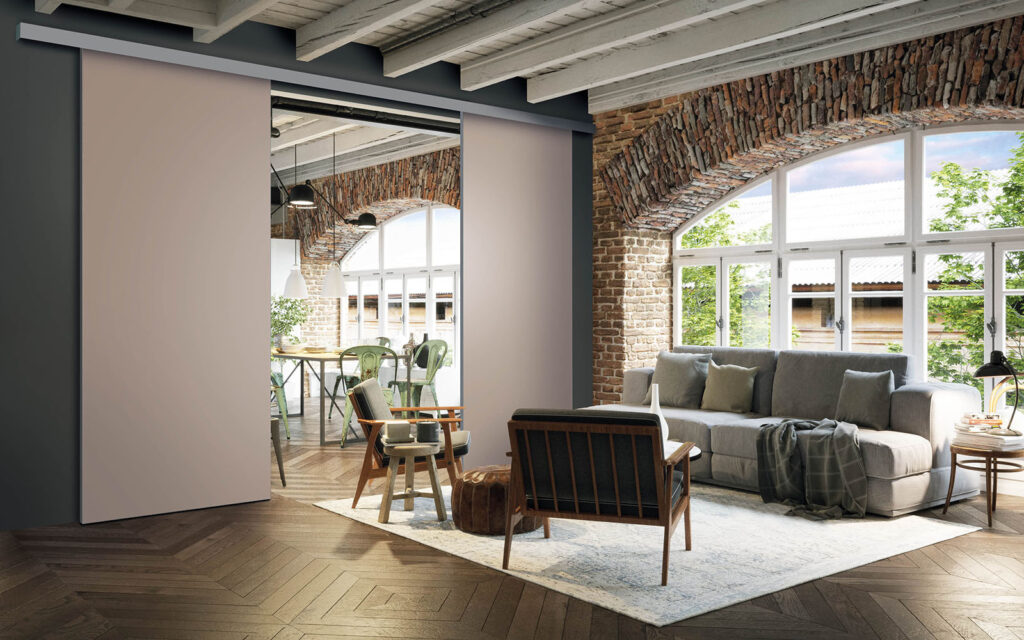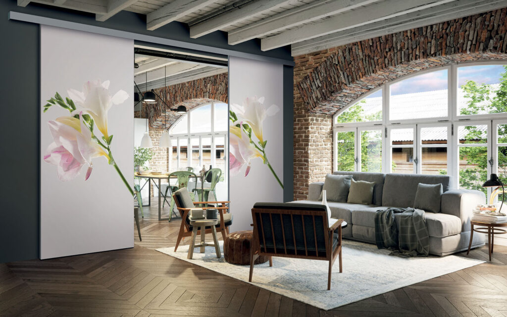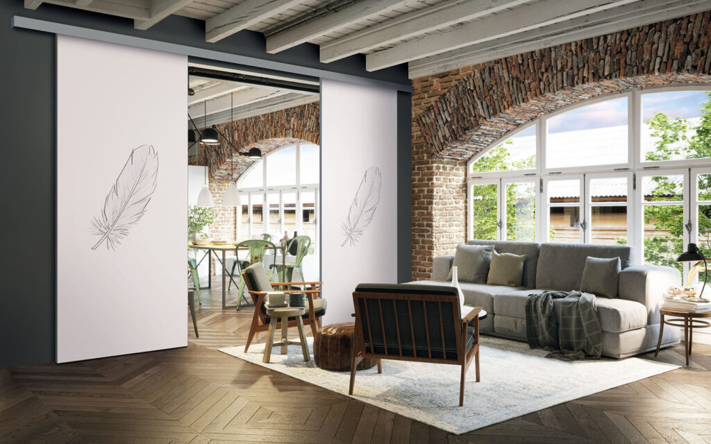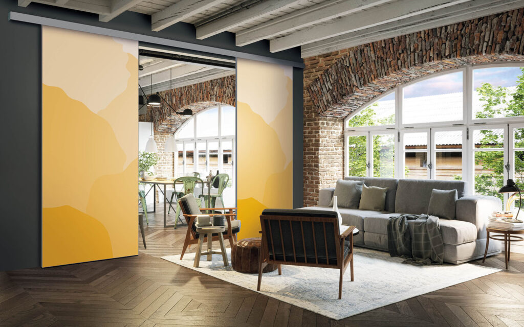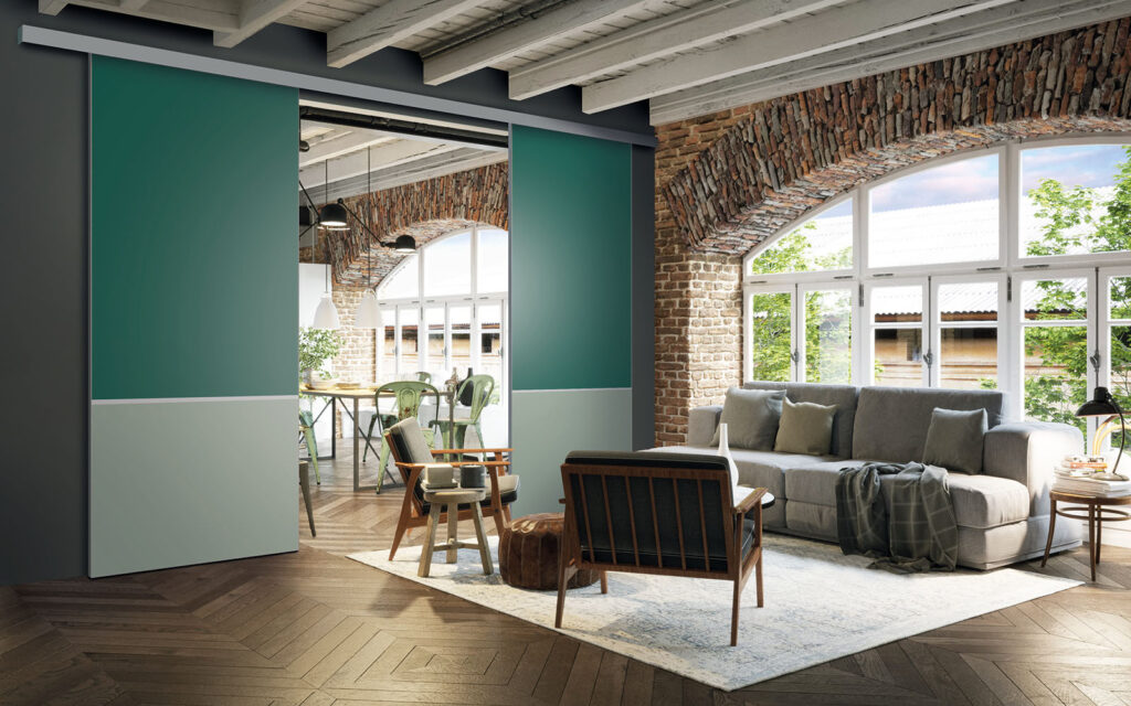 La pose d’une séparation de pièces ne nécessite pas de gros travaux :  son rail peut être posé au plafond ou en applique (sur un mur).  Utilisant le système Altitude de Coulidoor, elle ne présente pas de rail au sol. De cette manière, le passage se fait sans encombre. Comme elle est coulissante, la séparation de pièces s’adapte à votre intérieur sans prendre de place.