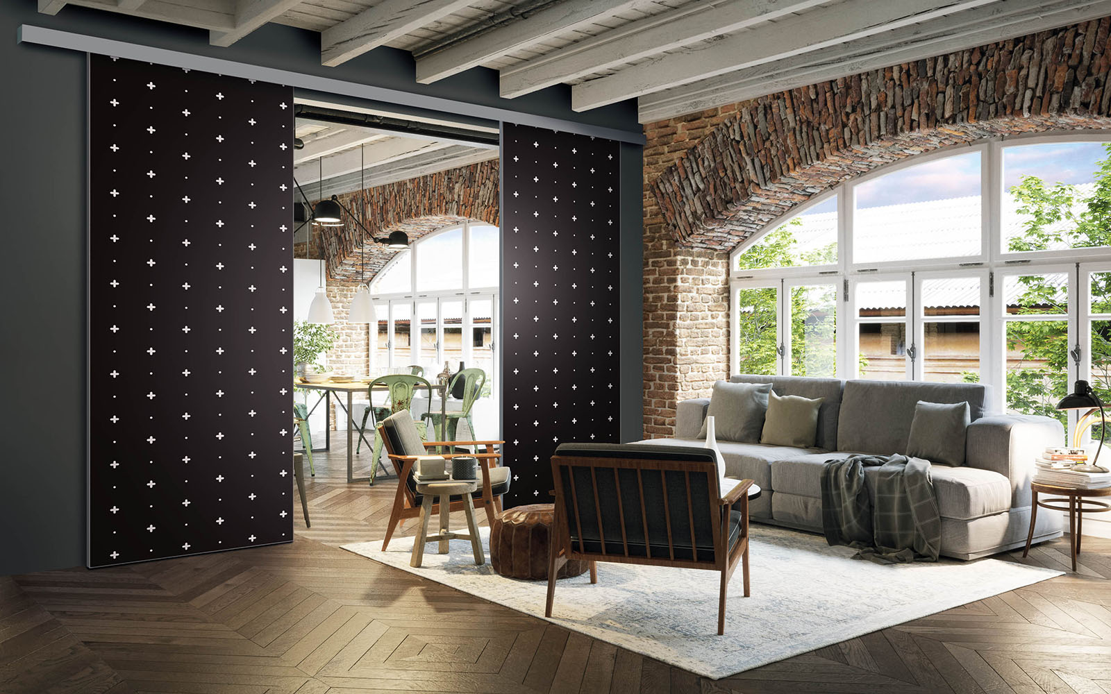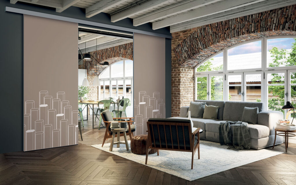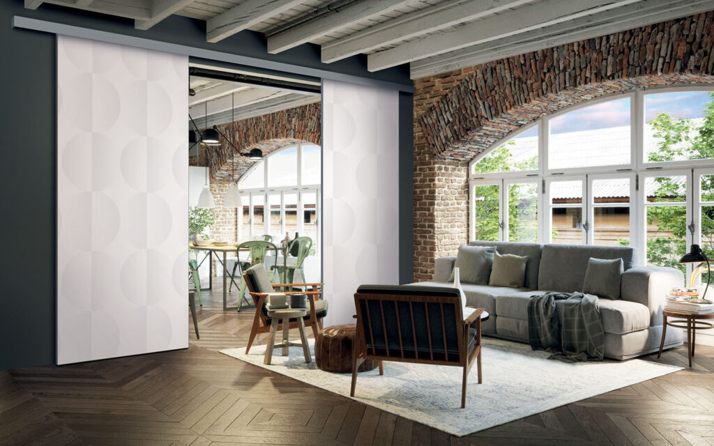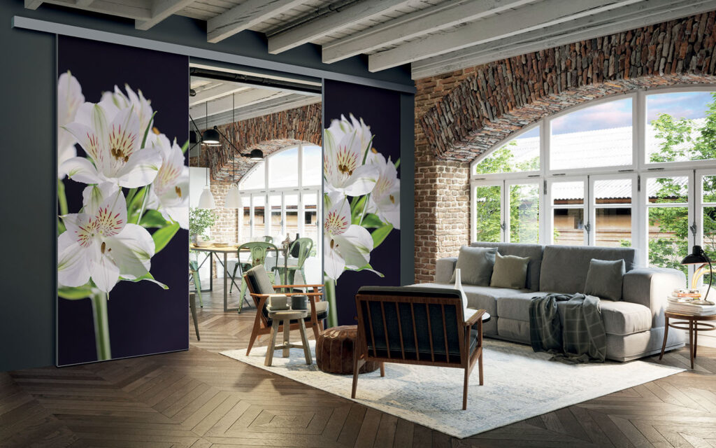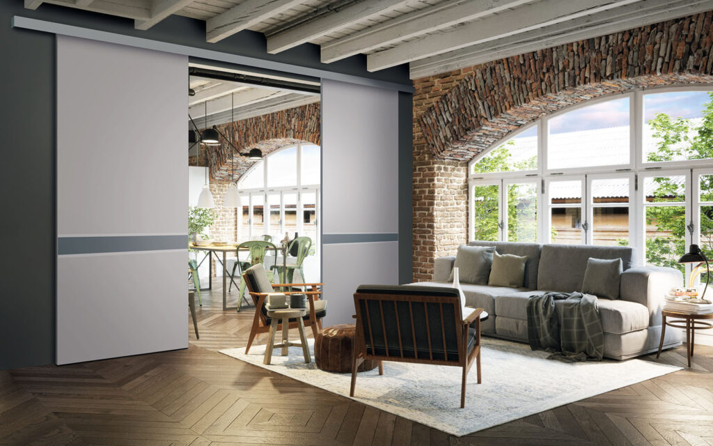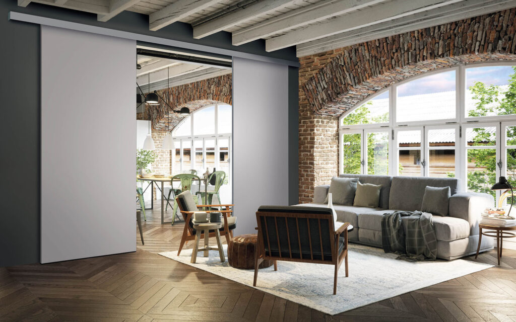 La pose d’une séparation de pièces ne nécessite pas de gros travaux :  son rail peut être posé au plafond ou en applique (sur un mur).  Utilisant le système Altitude de Coulidoor, elle ne présente pas de rail au sol. De cette manière, le passage se fait sans encombre. Comme elle est coulissante, la séparation de pièces s’adapte à votre intérieur sans prendre de place.